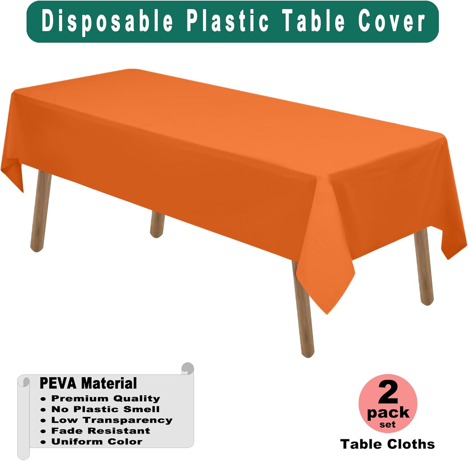 PARTY ULYJA Orange Plastic Tablecloths 2 Pack Disposable Table Covers 54 x 108 Inch PEVA Fall Colors Table Cloths for BBQ Picnic Birthday Wedding Parties 8 ft Rectangle Table Use