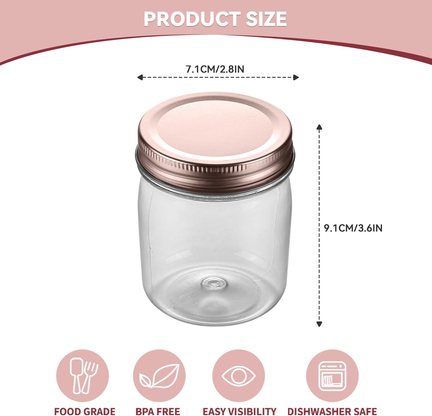 novelinks 8 oz Clear Plastic Jars with Screw-On Lids - BPA-Free Refillable Storage Containers for Slime, Spices, Crafts, Kitchen & Home Organization (16 Pack,Rose Gold)