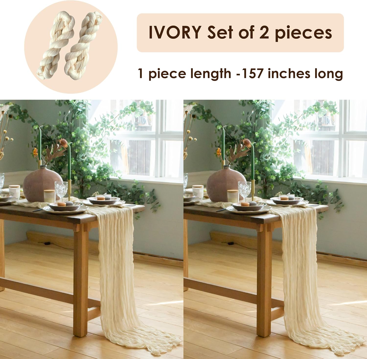 Ivory Cheesecloth Table Runner Set of 2 Runners 141 in Long Each Cream Gauze Table for Wedding Table Baby Shower Decorations or Bridal Shower Decor Table Cloth Modern Table Runner Boho Table Decor