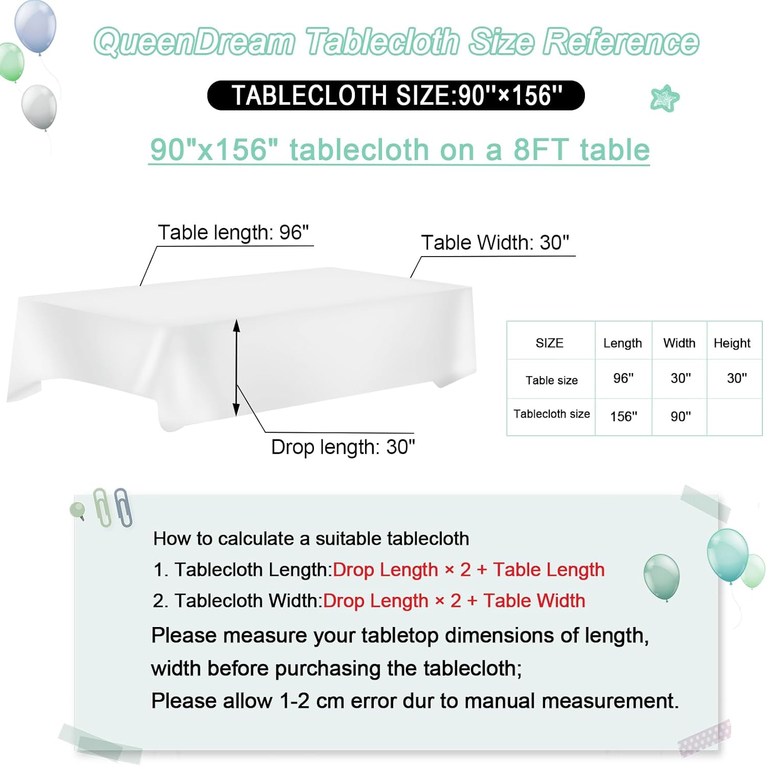 - QueenDream Warm Tip: The pictures below are for your reference ONLY and make sure your tablecloth size looking through the size picture.If you have any questions about the product, please feel free to contact us.