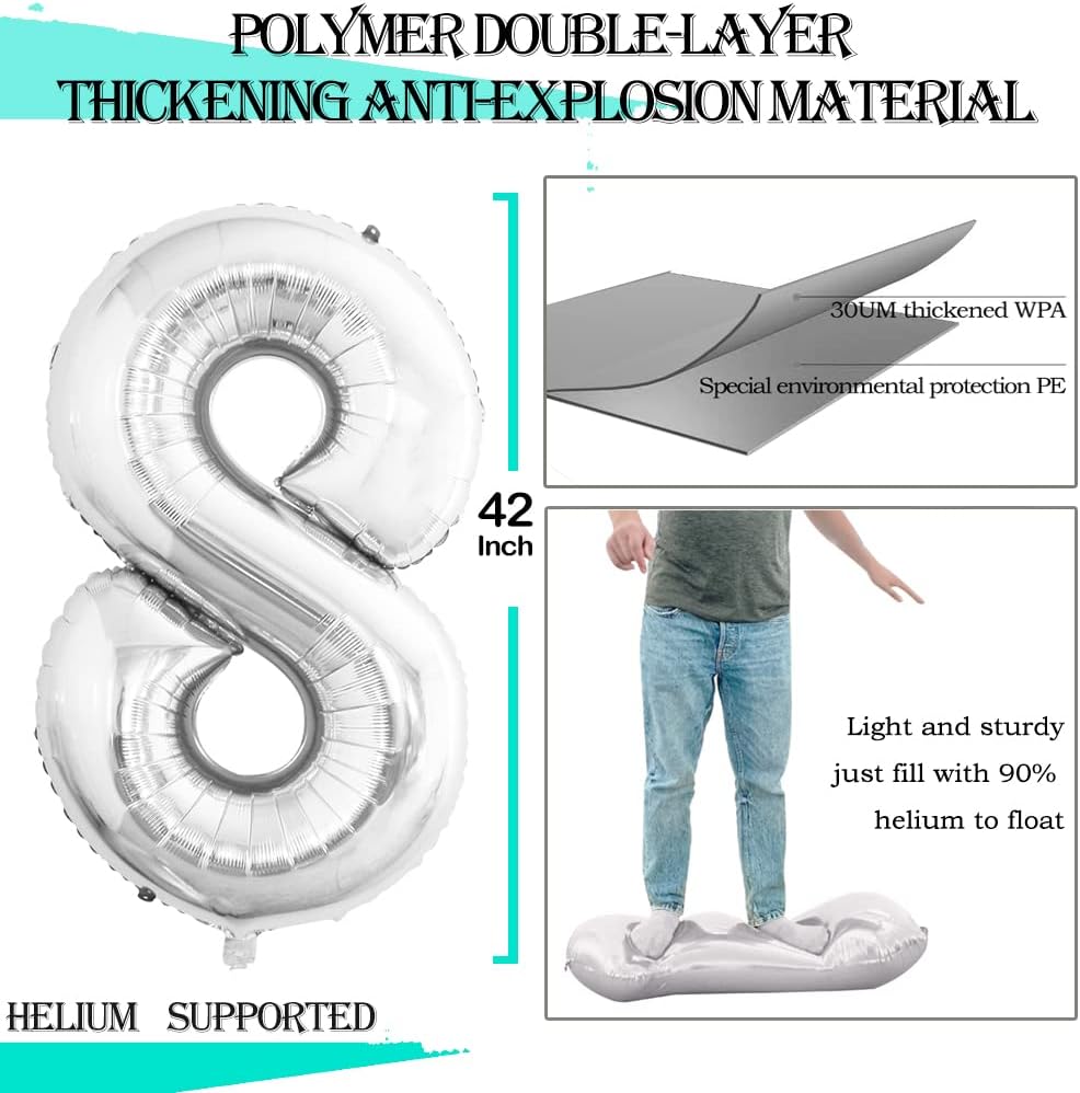 - Package Includes:42 inch Silver number 80 foil balloons,1 inflatable straw,10 meters ribbon