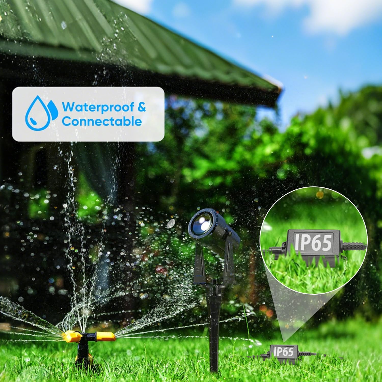 - 【Connectable & Adjustable】Waterproof twist connector for quick and easy connection with single led spot light, which does no harm to passersby or pets such as dogs. 270 degree adjustable head let you focus light wherever you need it to, such as walls, trees, fences, flower bed etc