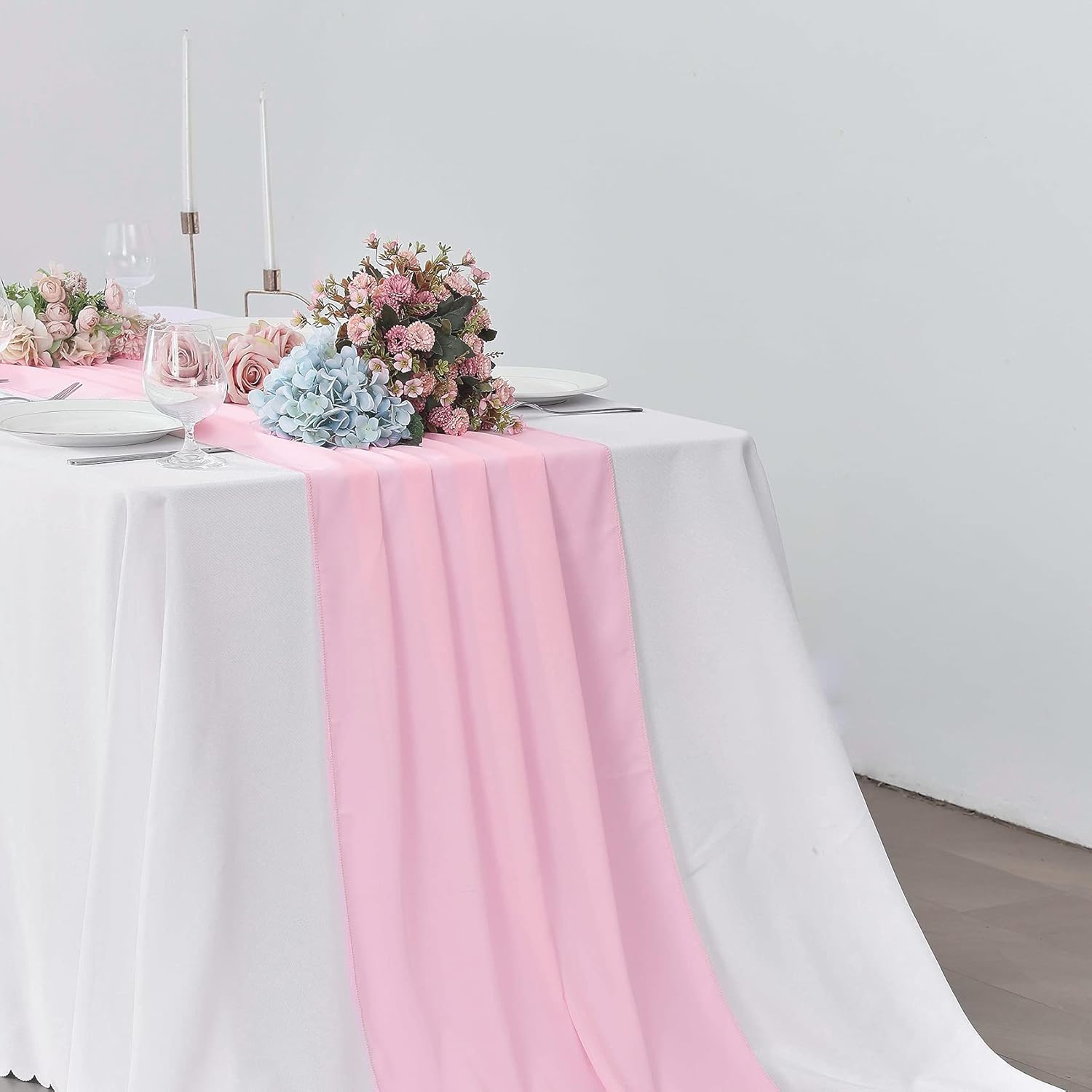 - With special gauze fabrics and no seams, the elegant table runner creates a romantic feeling for your wedding table, sweetheart table and cake table.