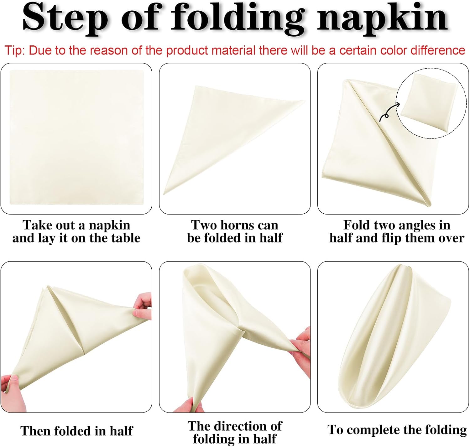 - Package content: you will receive 12 pieces of satin napkins in ivory, each is 17 x 17 inches/43 x 43 cm in size, the quantity is very large, enough for daily use and replacement