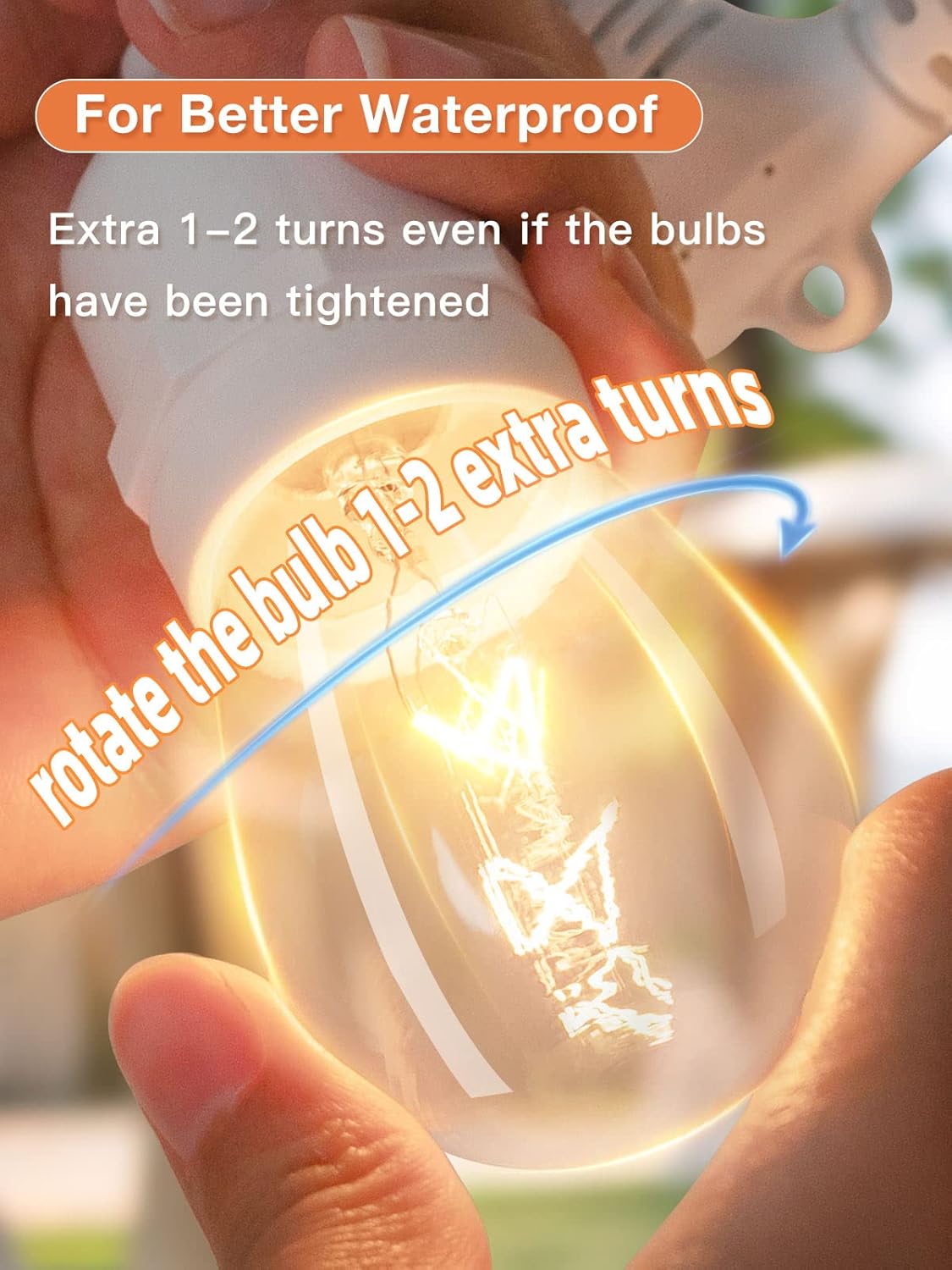 - [Weatherproof & Heavy-duty] This outdoor string lights are ETL listed weatherproof commercial. The insulation material can protect the strand from hot winter, sun, wind, rain, snow and damp. Flexible heavy-duty cord withstands the wear of indoor and outdoor use