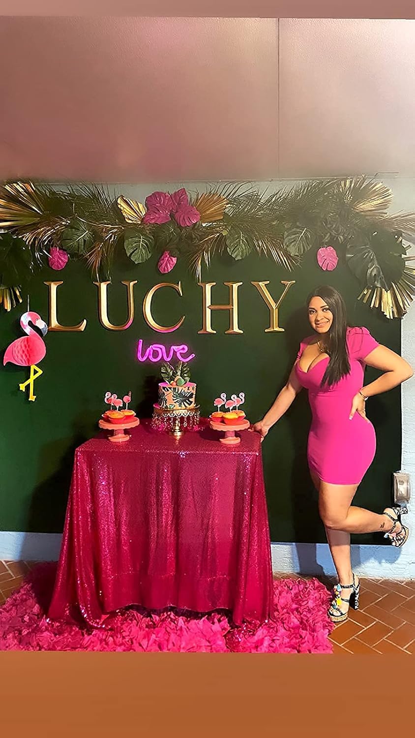 QueenDream Sparkly Sequin Tablecloth - Fuchsia Table Cloth 50x80 Inches Rectangle Table Overlay Fabric for Birthday Parties Baby Shower Decoration