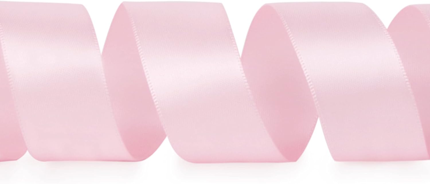 Ribbli Double Faced Light Pink Baby Pink Satin Ribbon,1” x Continuous 25 Yards,Use for Bows Bouquet,Gift Wrapping,Baby Shower,Floral Arrangement