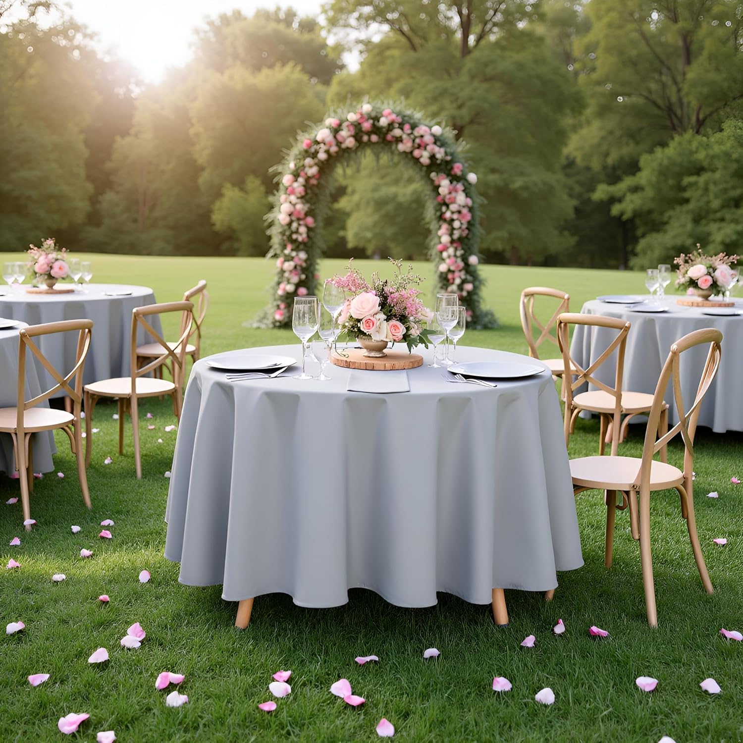 sancua Round Tablecloth - 90 Inch - Water Resistant Spill Proof Washable Polyester Table Cloth Decorative Fabric Table Cover for Dining Tables, Buffet Parties and Camping, Silver Grey