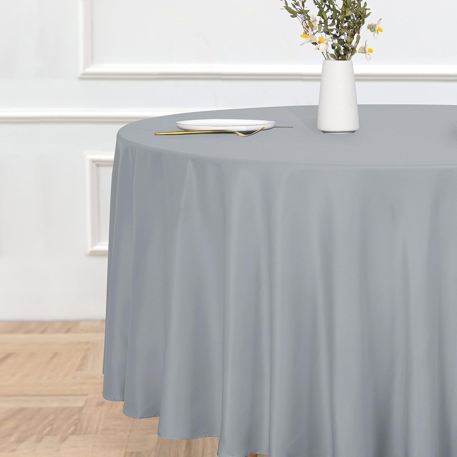 sancua Round Tablecloth - 108 Inch - Water Resistant Spill Proof Washable Polyester Table Cloth Decorative Fabric Table Cover for Dining Tables, Buffet Parties and Camping, Silver Grey