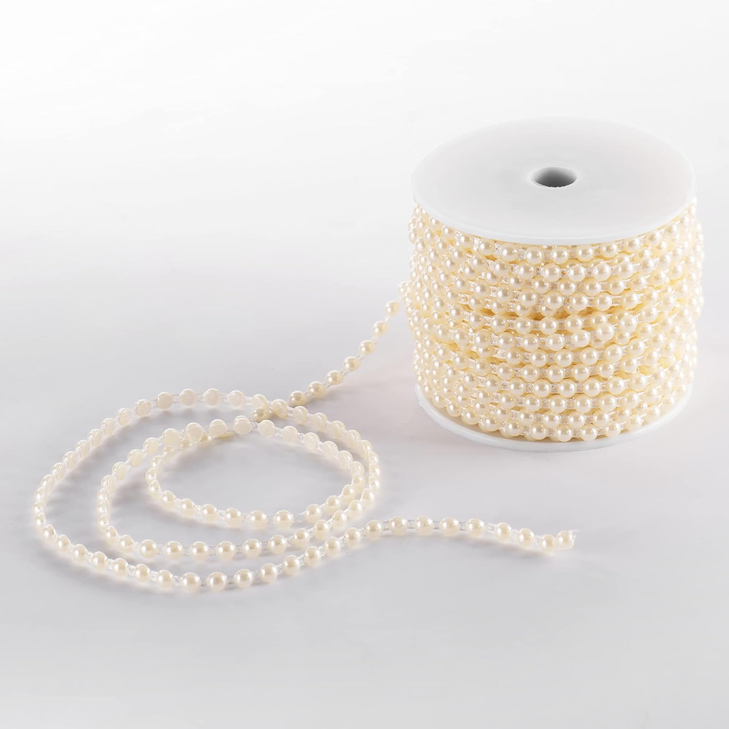 Flat Pearl Garland String 27 Yards, 6MM Half-Round Beaded Spool Roll Crafts for Wedding Decoration (Ivory)