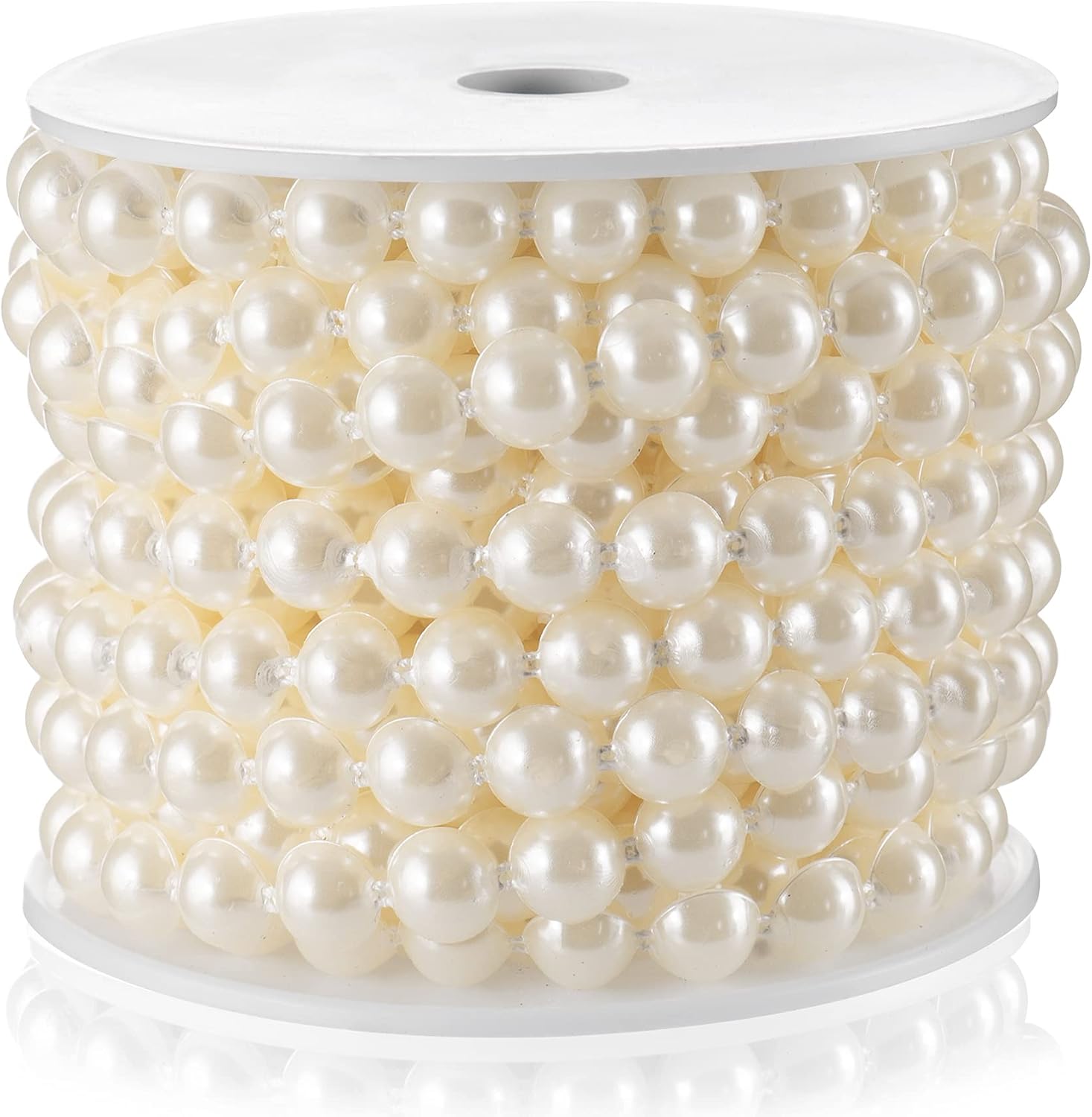 Half-Round Pearl Bead Garland String 11 Yards, 10MM Flat Pearl Beaded Spool Roll Crafts for Wedding Party Decoration (Ivory)