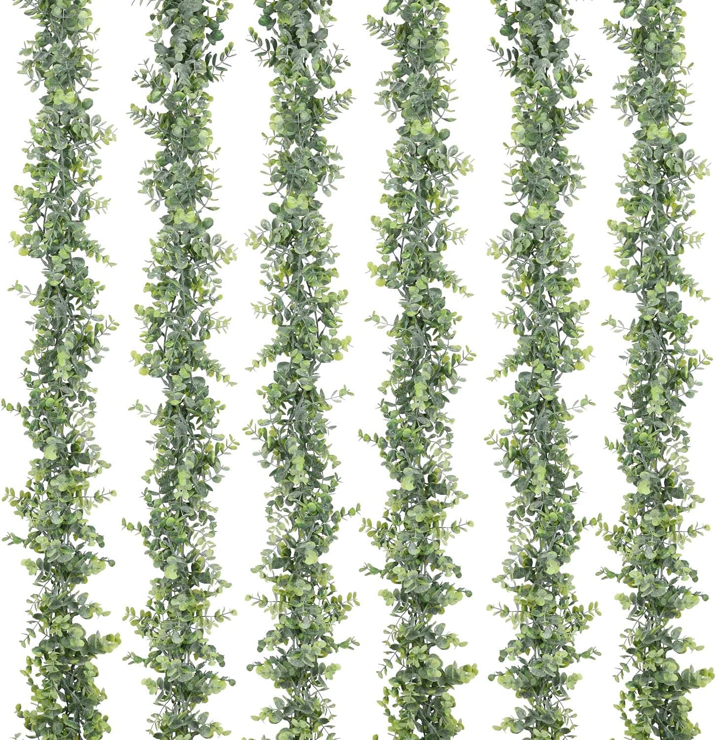 Lvydec 6 Pack Artificial Eucalyptus Garland, Fake Eucalyptus Greenery Garland Wedding Backdrop Arch Wall Decor, 6 Feet/Strand Fake Hanging Plant for Table Festival Party Decoration