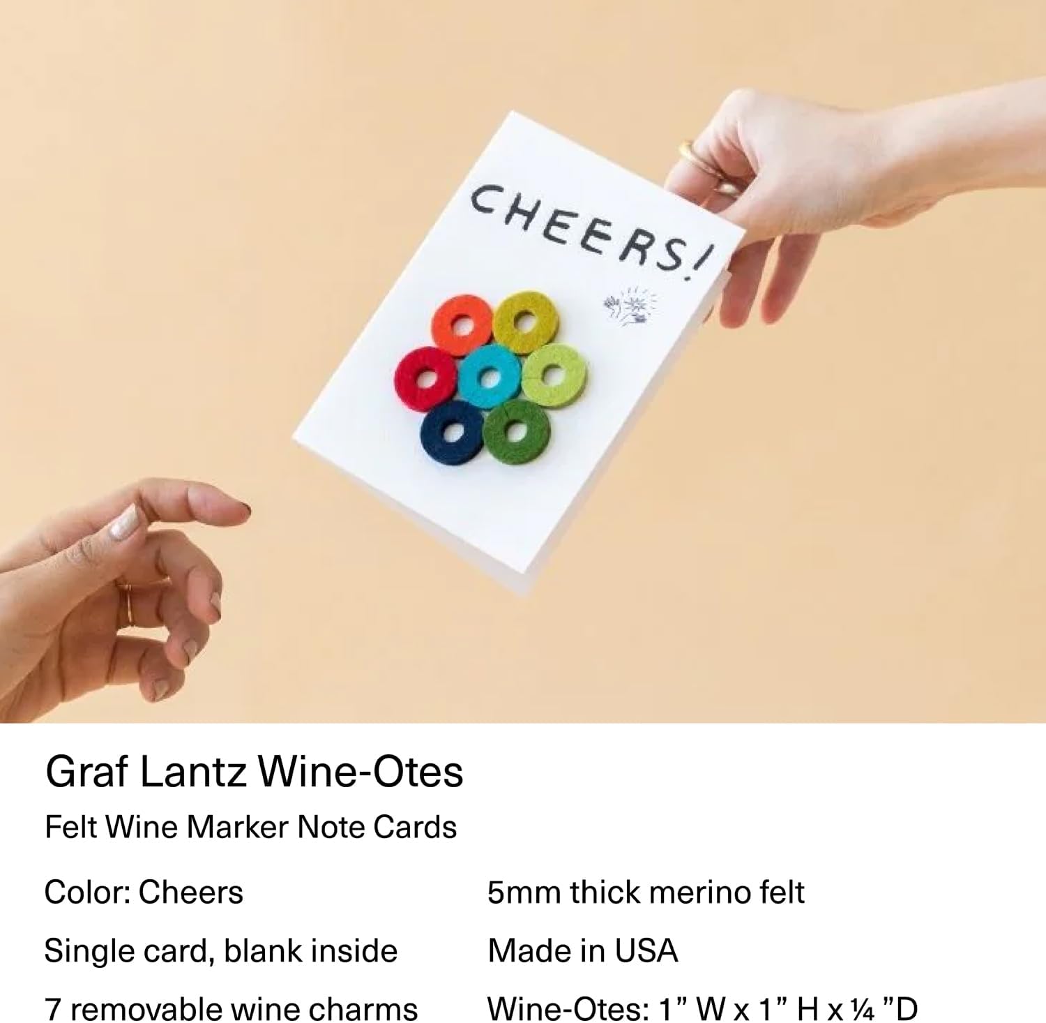 Graf Lantz - Wine-Ote's Merino Wool Wine Glass Charms (Cheers) 7 Count - Drink Markers with Note Card - Reusable - 7 Colors - Boho Style - Home Decor, Party Favors & Vacation Essentials - 5mm Felt