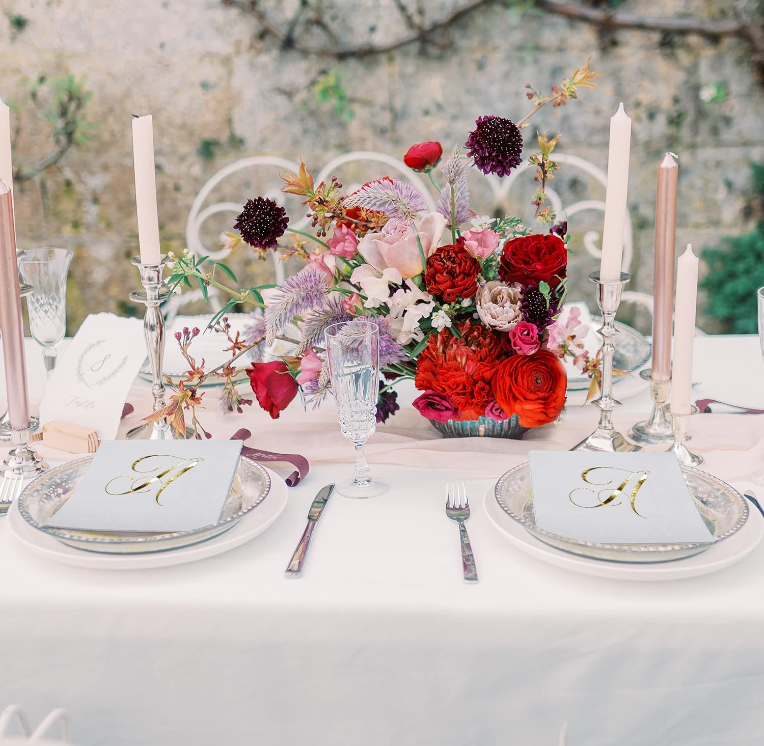 - High Quality: Napkins are made of high quality thick paper. Napkins are soft and absorbent & dry your hands quickly. These personalized napkins will be great for any party. The metallic gold A initial party napkins really adds dimension to your parties as your guests will love the pretty design.