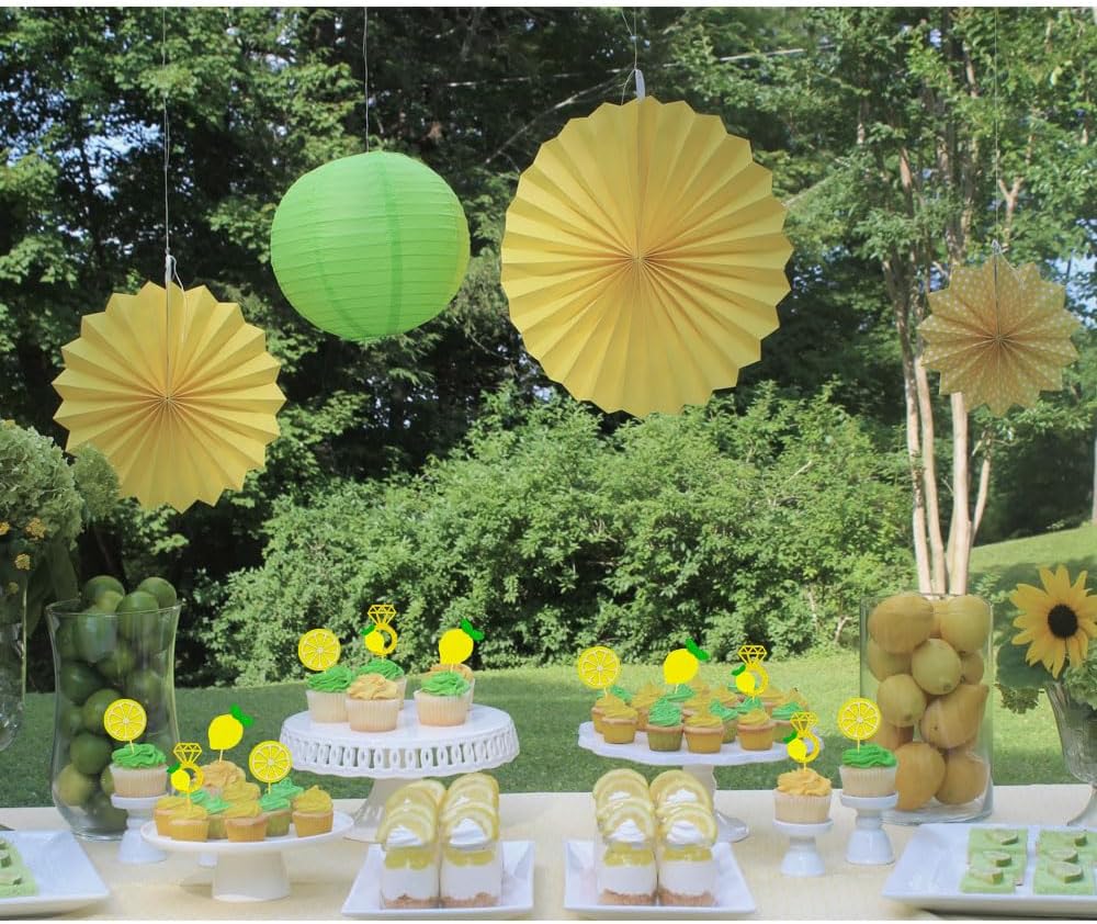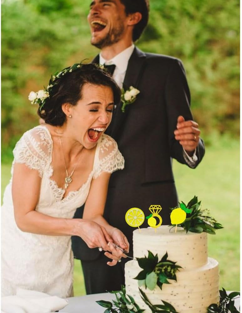 Glitter Lemon Cupcake Toppers Picks for Wedding Engagement Bridal Shower Bachelorette Party Decoration - Set of 24
