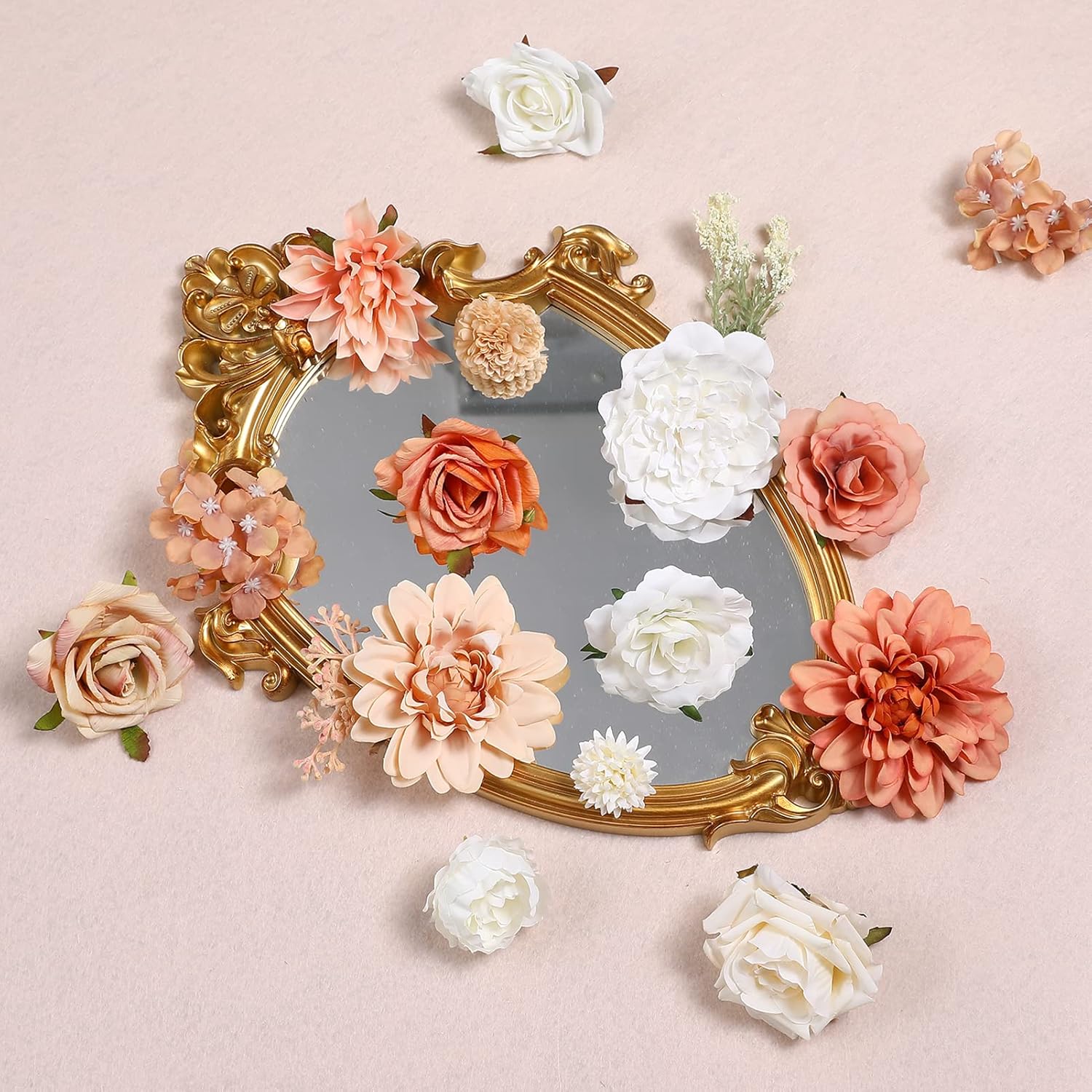 - Material: This is a combination pack of flowers of different materials in thematic colors. Main materials include 34pcs artificial silk flowers + Some green leaves。which gives them the look of fresh roses and touches soft.