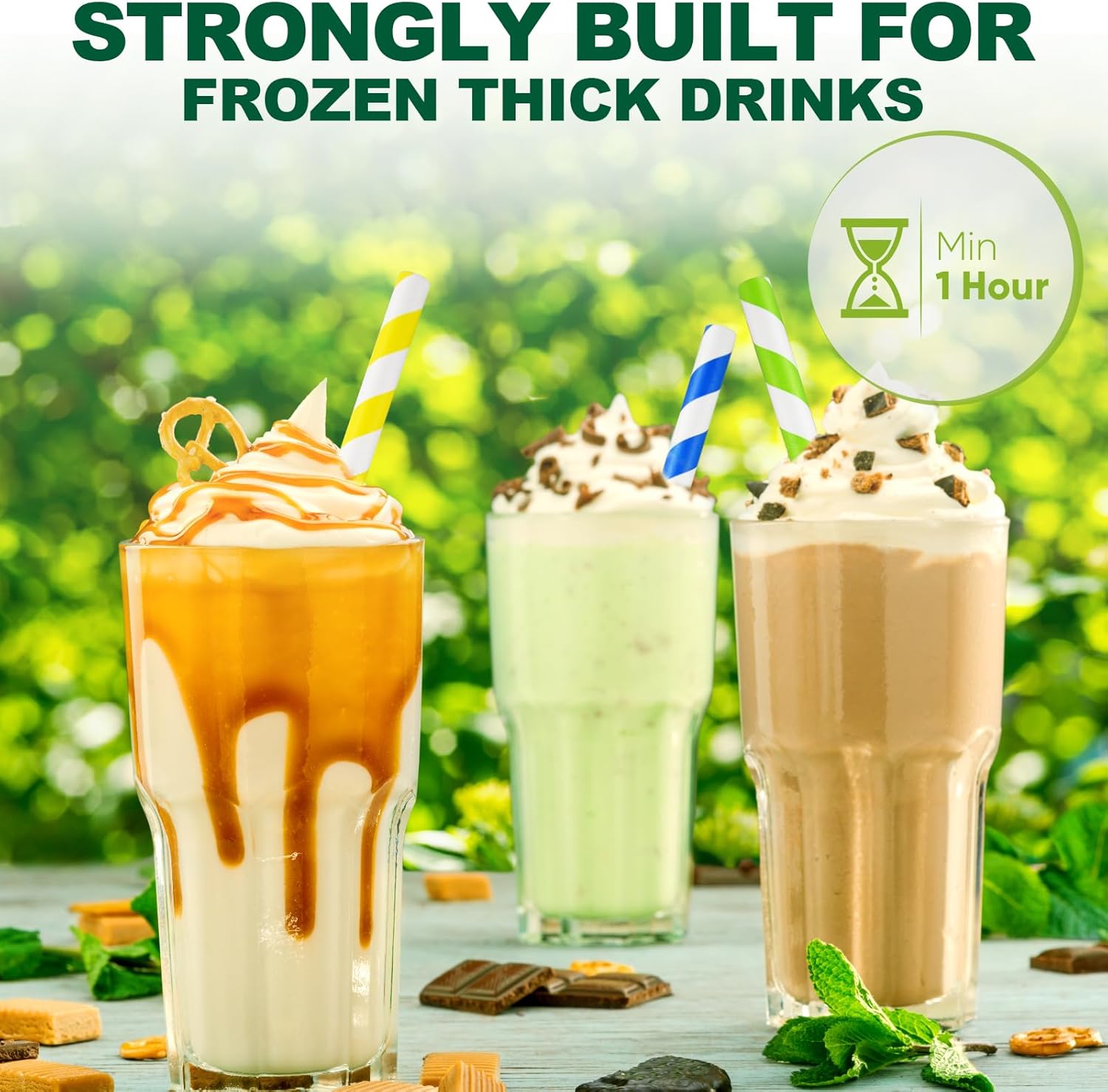 - PAPER SMOOTHIE STRAWS - Measure 8.5" long and feature a 0.4" / 10MM wide diameter, built for thick milkshakes and smoothies, icees, frozen drinks