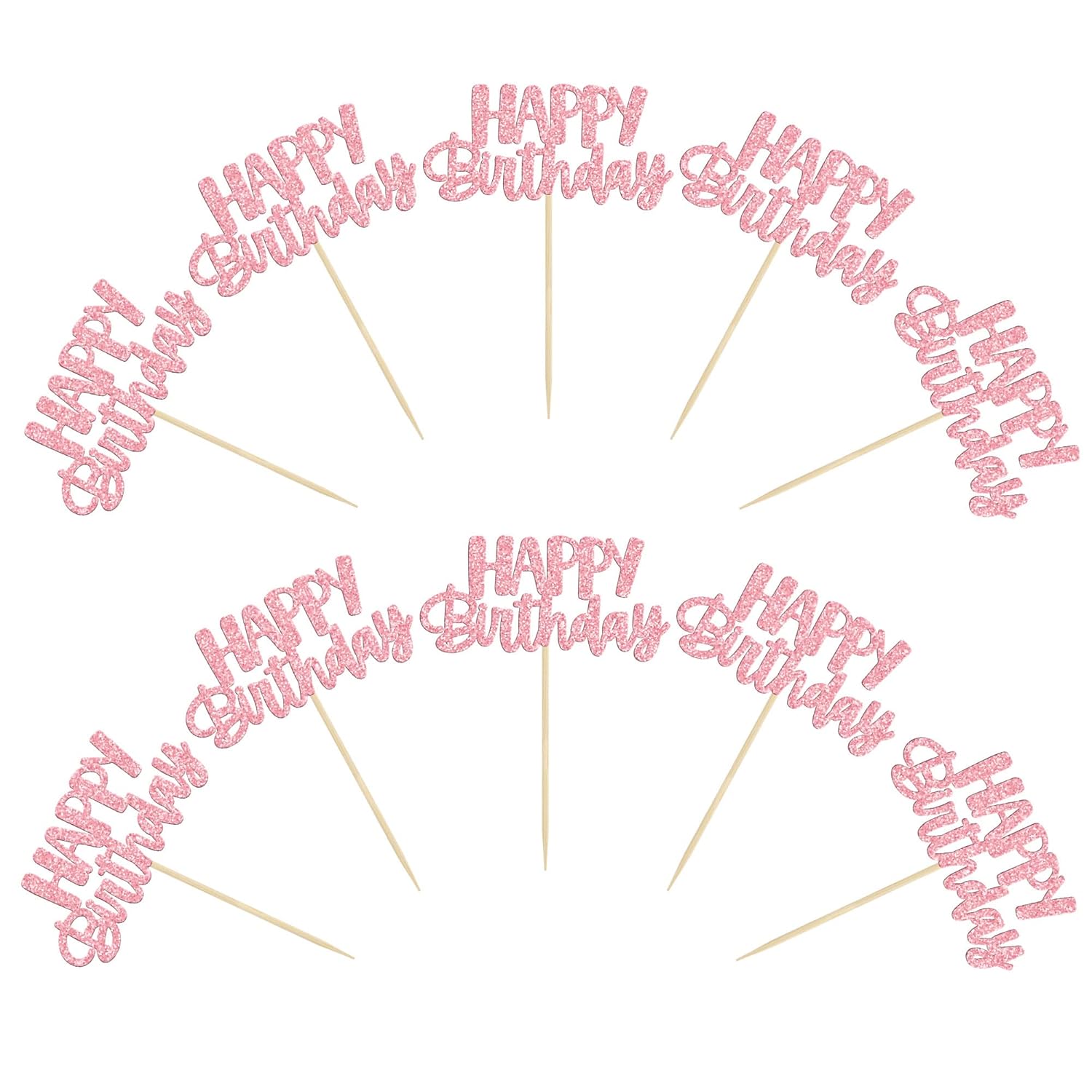 Gyufise 24Pcs Happy Birthday Cupcake Toppers Pink Glitter Celebrating Birthday Cake Picks Baby Shower Kids Birthday Party Decoration Supplies