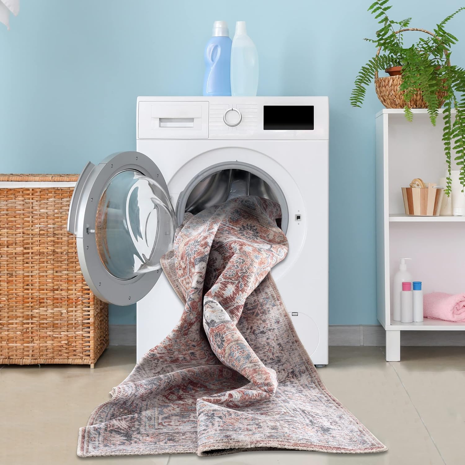 - MACHINE WASHABLE: Machine wash on delicate cycle (do not use bleach) at 85°F (30°C) and line dry or dry on air-only cycle without heat. Vacuum regularly and spot clean small stains. This easy to clean rug is perfect for families with kids and pets, and for high traffic areas.
