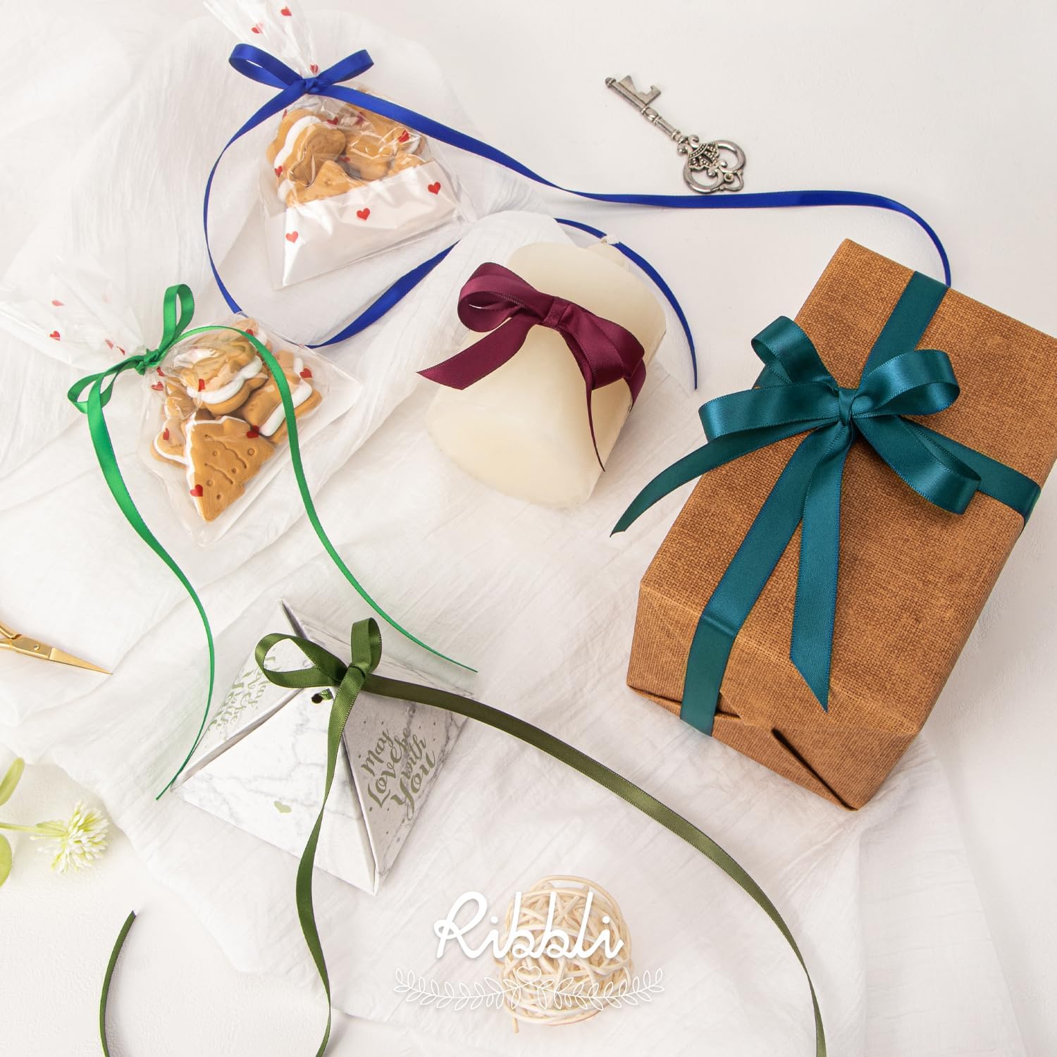 Ribbli Emerald Green Double Faced Satin Ribbon,1/4” x Continuous 25 Yards,Use for Bows Bouquet,Gift Wrapping,Christmas Decorating