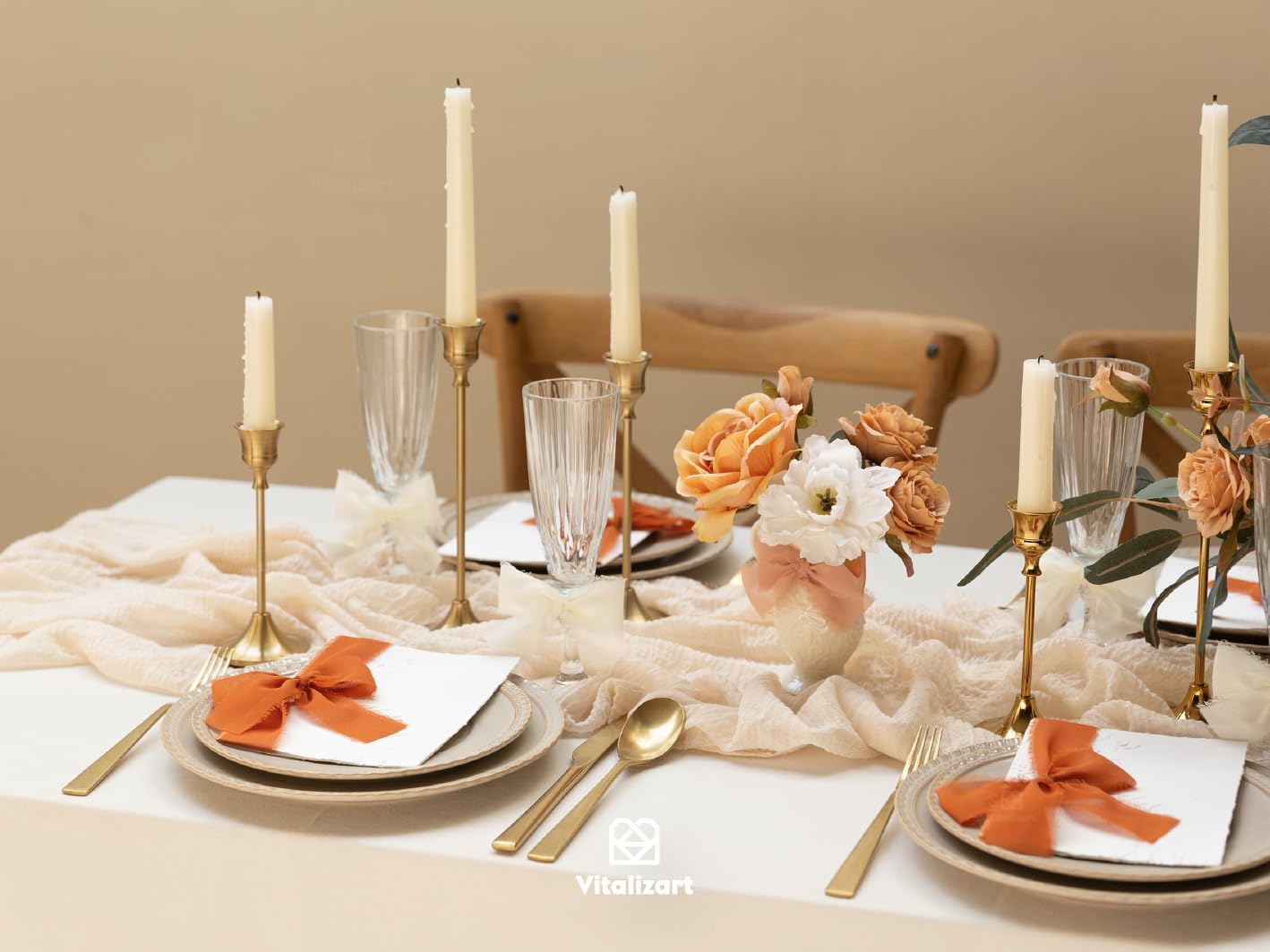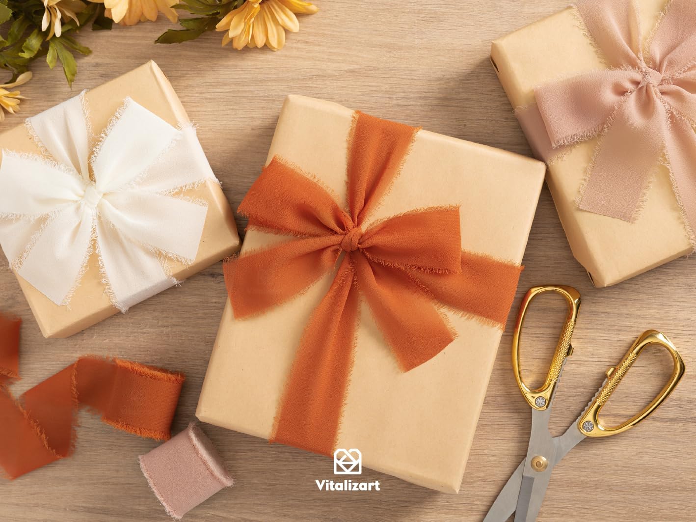 Vitalizart Fall Handmade Chiffon Silk Ribbon Fringe 1.5" x 21 Yd Terracotta Cream Frayed Edges Ribbons for Wedding Invitations Bridal Bouquets Gifts Wrapping Crafts Holiday Party Decorations