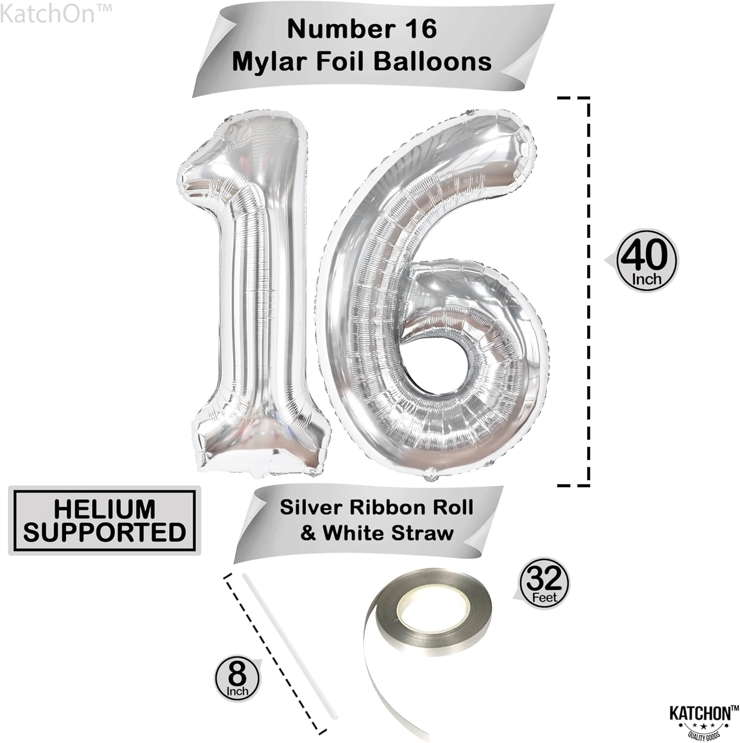 - GIANT SIZE : 40 INCH | LUXURIOUS SHINY METALLIC SILVER 16 NUMBER BALLOON : Celebrating 16 year birthday party decorations or anniversary? This jumbo silver 16 balloons for birthday is size of 40 Inch ideal for 16th birthday decorations for girls or for 16th anniversary decorations. It comes with 8 inch white straw and 32 foot ribbon roll. Perfect for your 16th birthday decorations for boys, sweet 16 decorations girls or 16 year old decorations.
