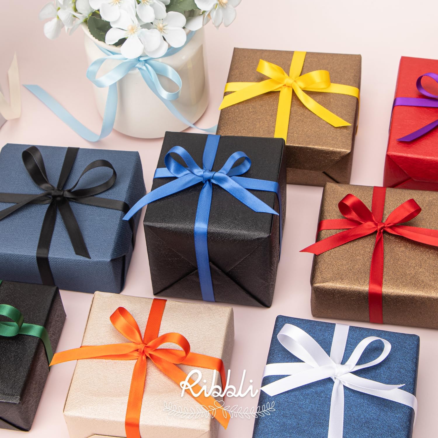 Ribbli Double Faced Red Satin Ribbon,3/8” x Continuous 25 Yards,Use for Bows Bouquet,Gift Wrapping,Floral Arrangement