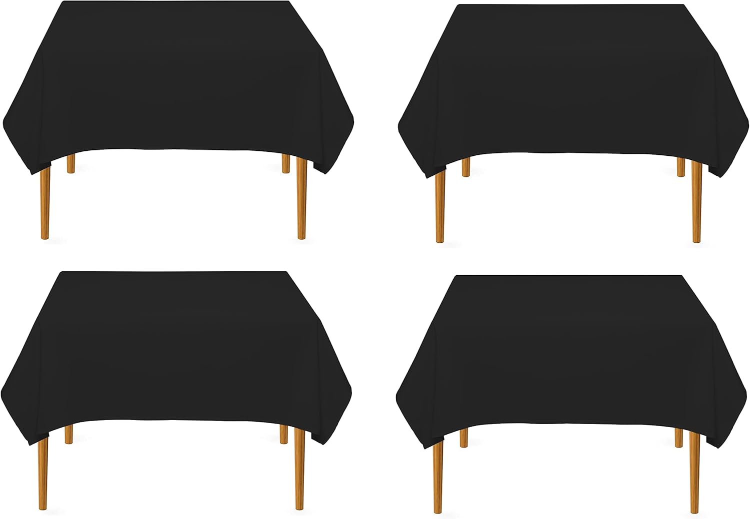 Pomp Black 70" x 70" Poplin Polyester Tablecloth (4 Pack) | Wrinkle + Stain Resistant Easy Care Premium Fabric | Fits Square or Round Table