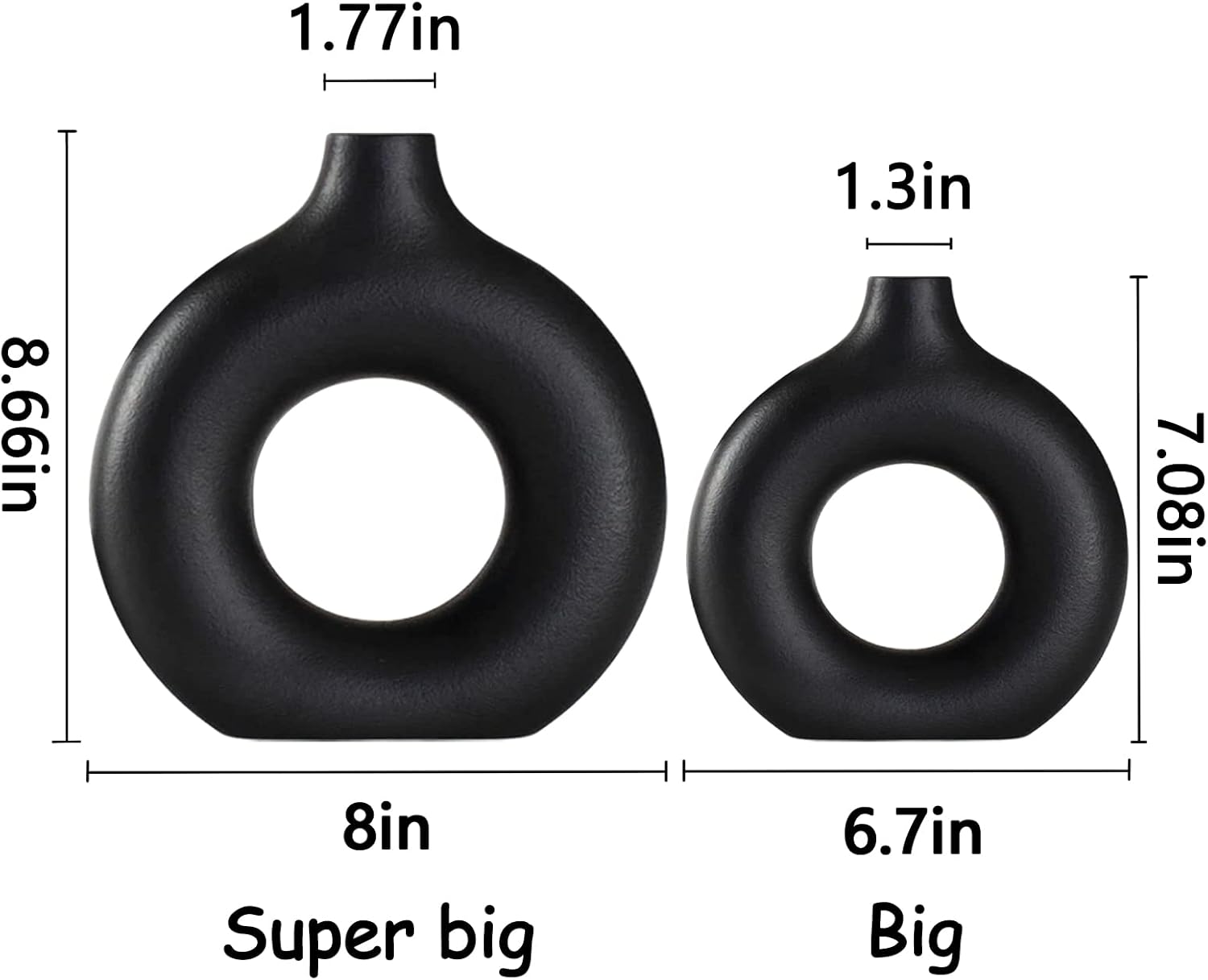- 🌷【UNIQUE MODERN DESIGN 】– If you are tired of those dull and boring designs, then you will definitely be attracted by these beautiful hollow design black ceramic vases for home décor. The donut design makes the flower vases unique and stylish; you can see through the hollow out while enjoying beautiful flowers in the vase, which adds more romance and fashion to your house.