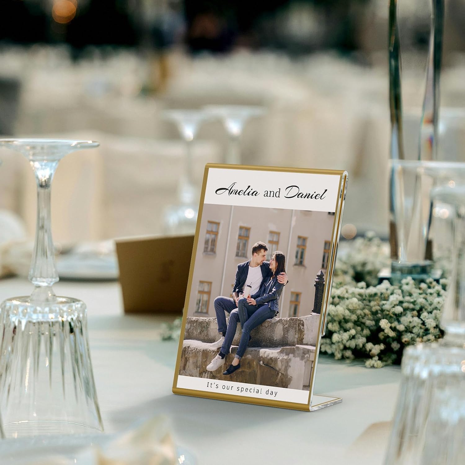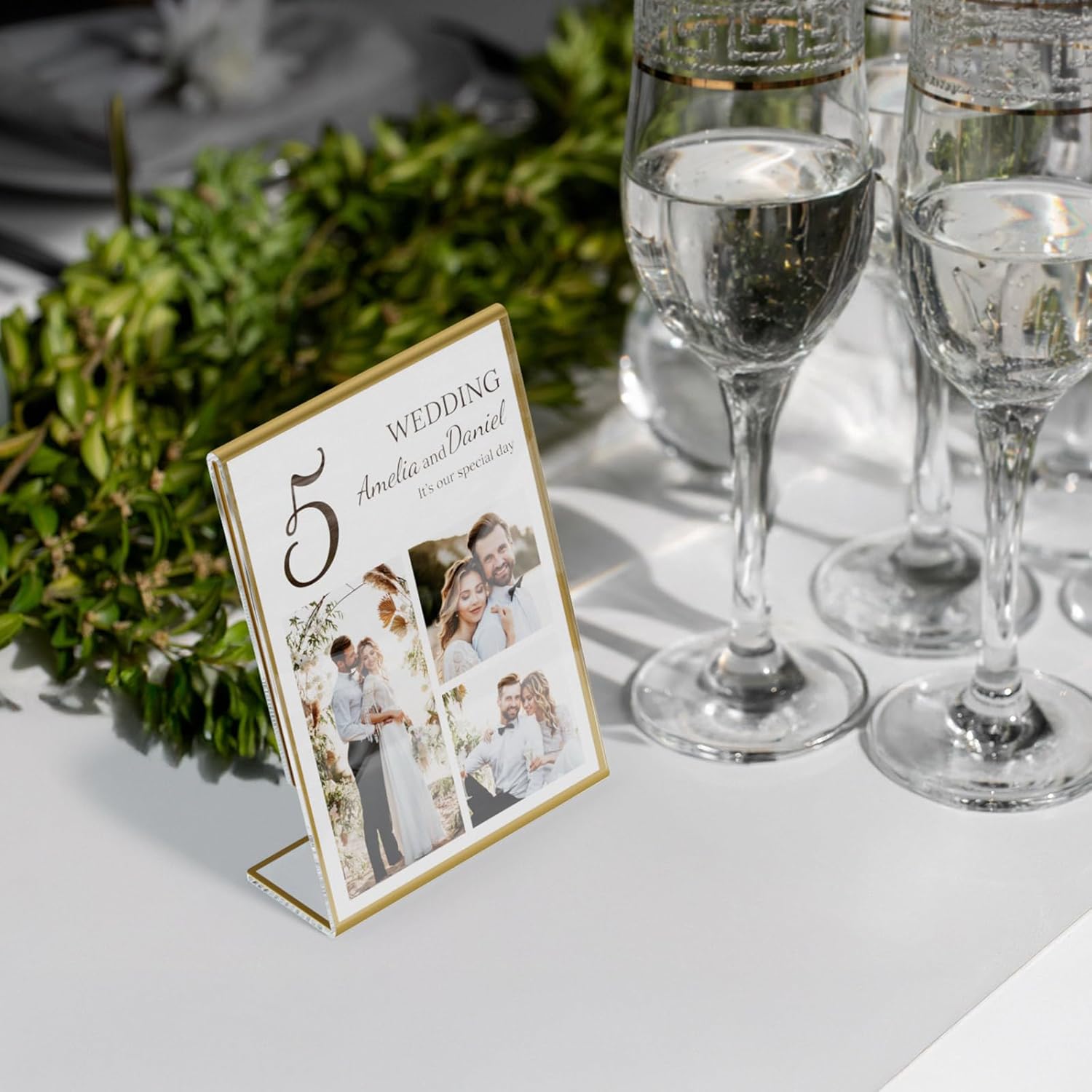 - Versatile for Any Occasion - Perfect for graduations party, weddings, baby showers, home decor, business events, and more, these gold frames adapt to any setting—easily showcase 5x7 photos, table numbers, menus, QR CODES, or flyers, maximizing versatility so they're always in use and never sitting unused, saving you money.