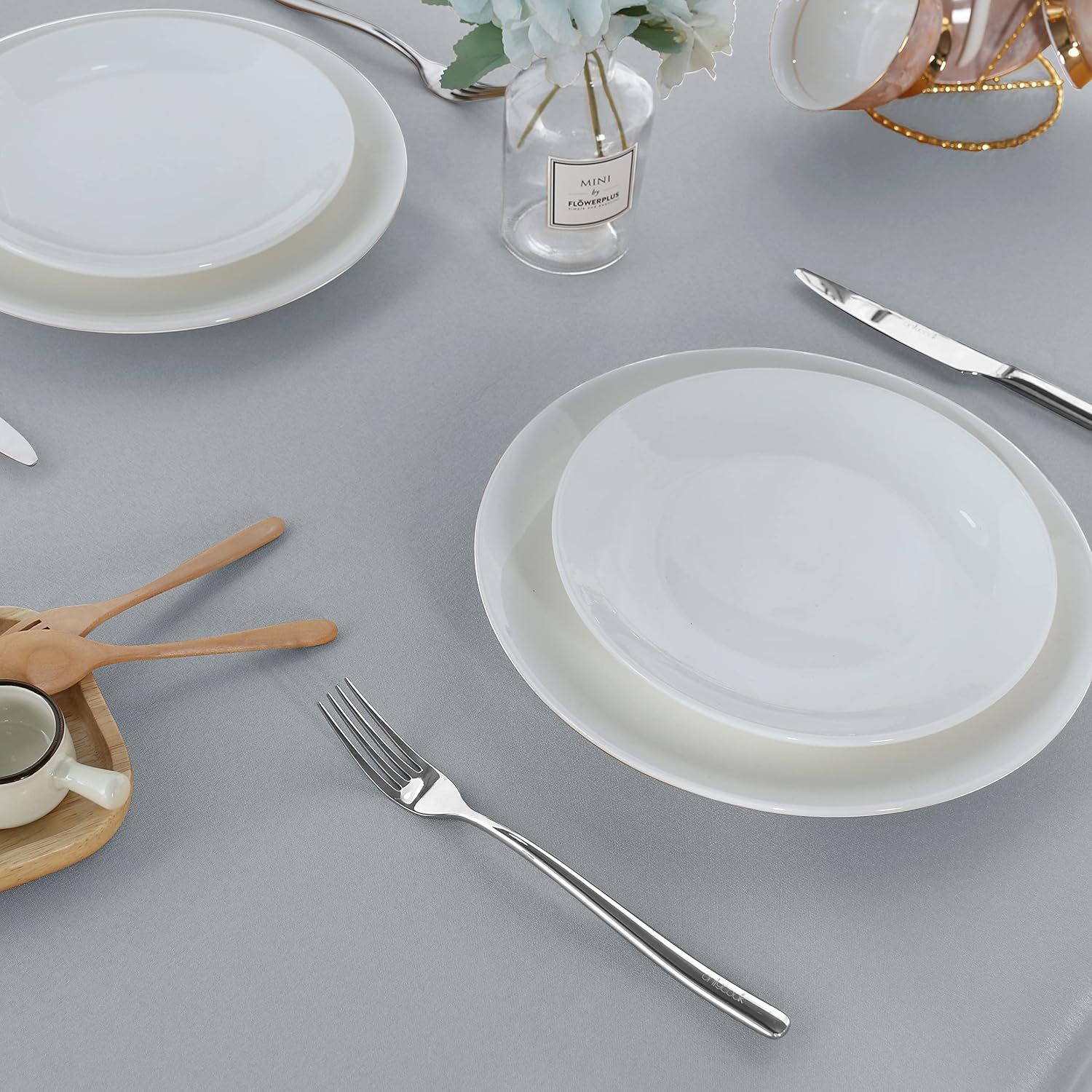 - HIGH QUALITY MATERIAL: Our tablecloth are crafted from high quality durable polyester fabric, perfect to protect and decorate your tables. The package will include 1 piece tablecloth measuring 60 W by 84 L inch silver tablecloth