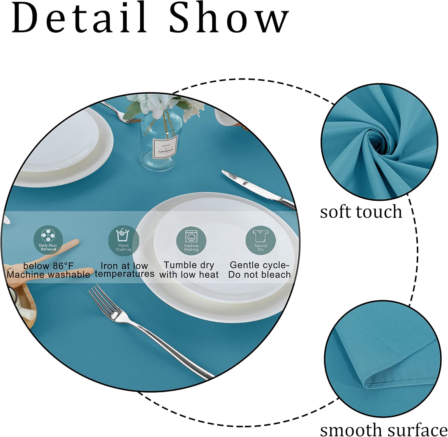 - EASY TO CARE: Our polyester tablecloth is machine washable and not easily deformed. You can wash with cold water and do not bleach. Iron on low heat if required.