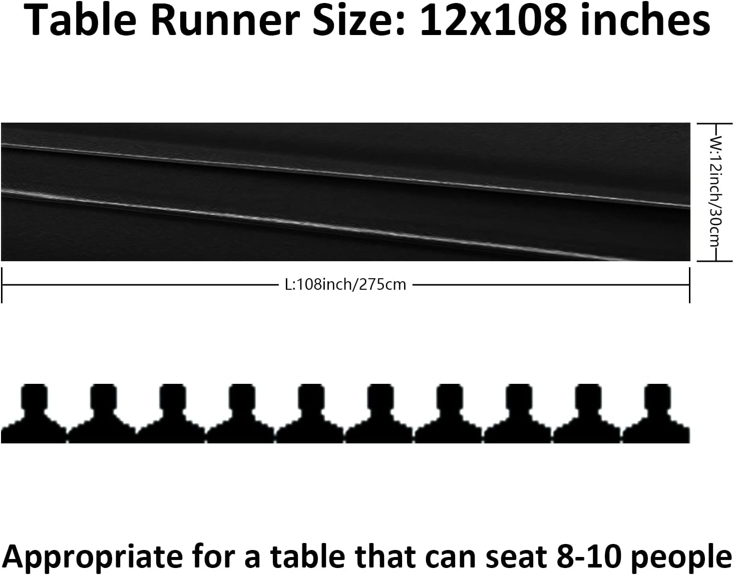 - Size:Satin table runner (12x108 inches),suitable for 8-10 seats either round or rectangle table,it is a perfect length for your event's table decorations.