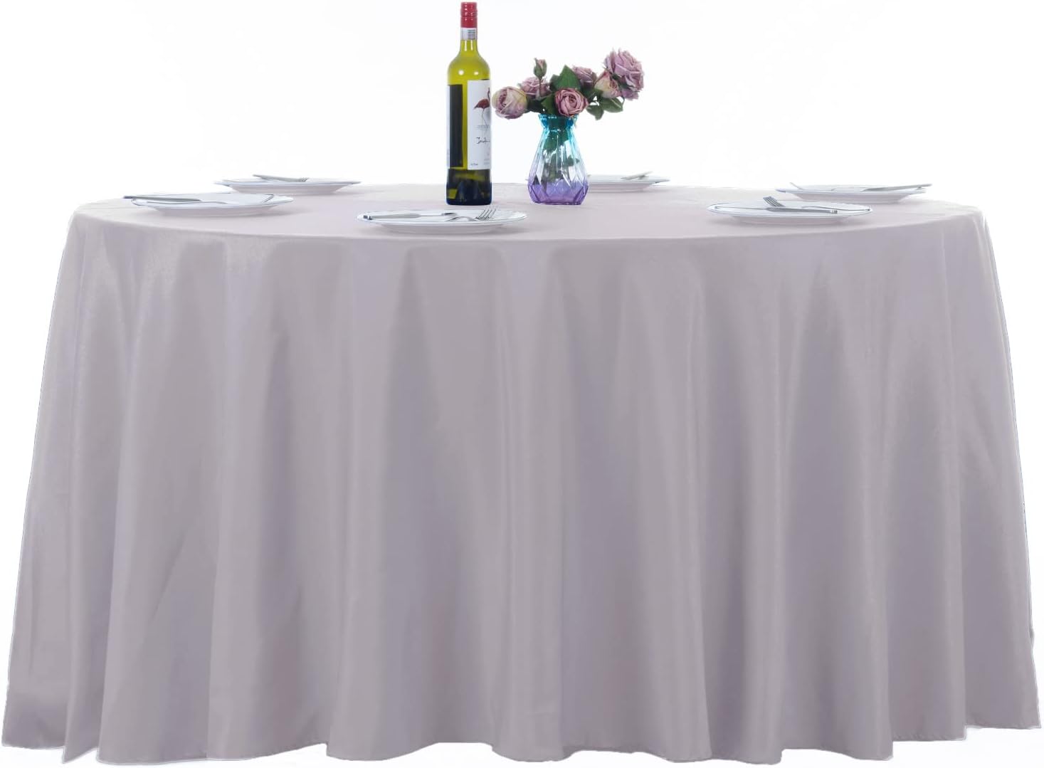 Ascoza 2pack 120 Inch Silver Round Tablecloth in Washable Polyester Fabric for Wedding/Banquet/Restaurant/Parties