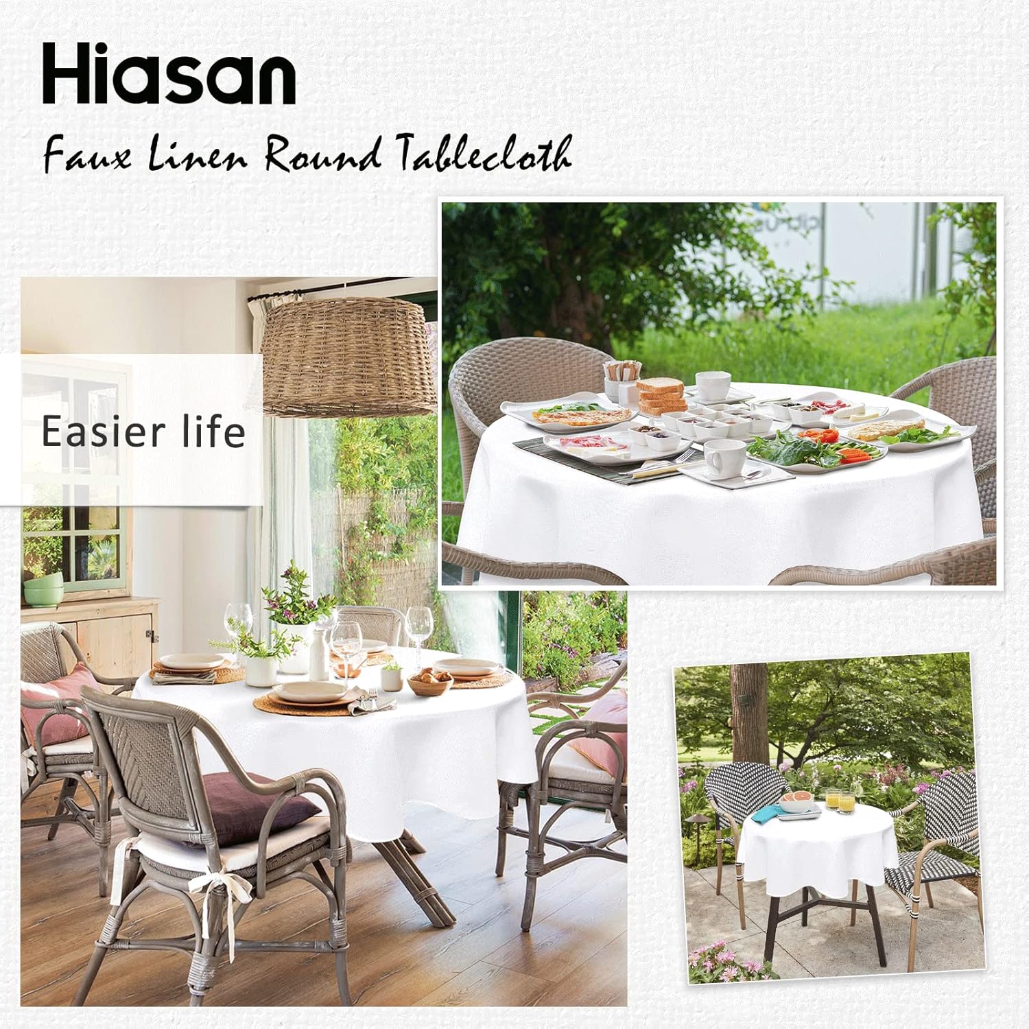 Hiasan Round Linen Tablecloth 108 Inch - Wrinkle and Stain Resistant Washable Polyester Fabric Table Cloth for Dining Room Kitchen Party, White