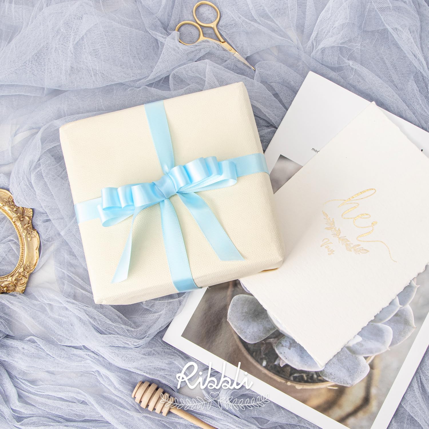 Ribbli Light Blue Satin Ribbon 5/8 inch x Continuous 25 Yards,Double Faced Satin Use for Craft, Gift Wrapping, Christmas Ornaments, Hair Bows, Bouquet Bows