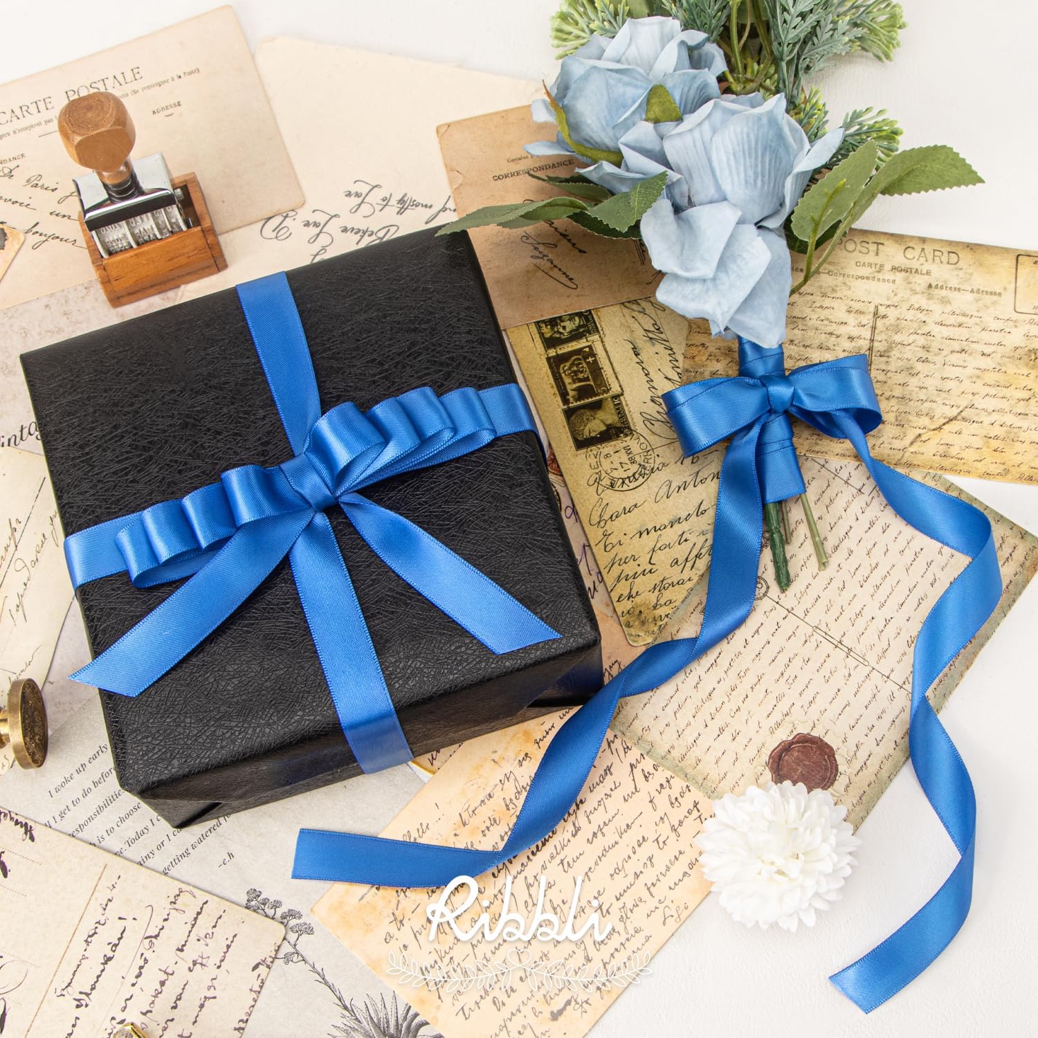 Ribbli Royal Blue Satin Ribbon 5/8 inch x Continuous 25 Yards,Double Faced Satin Use for Craft, Gift Wrapping, Christmas Ornaments, Hair Bows, Bouquet Bows