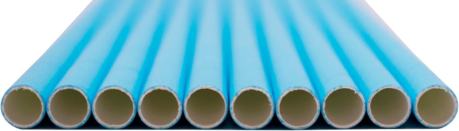 - Pack of 300 Pastel Blue wrapped paper straws that are 7.75” long and have a diameter of 0.25”. Made with 4-ply paper which translates into thicker and more resilient straws that won’t wilt or change shape in both hot and cold drinks.
