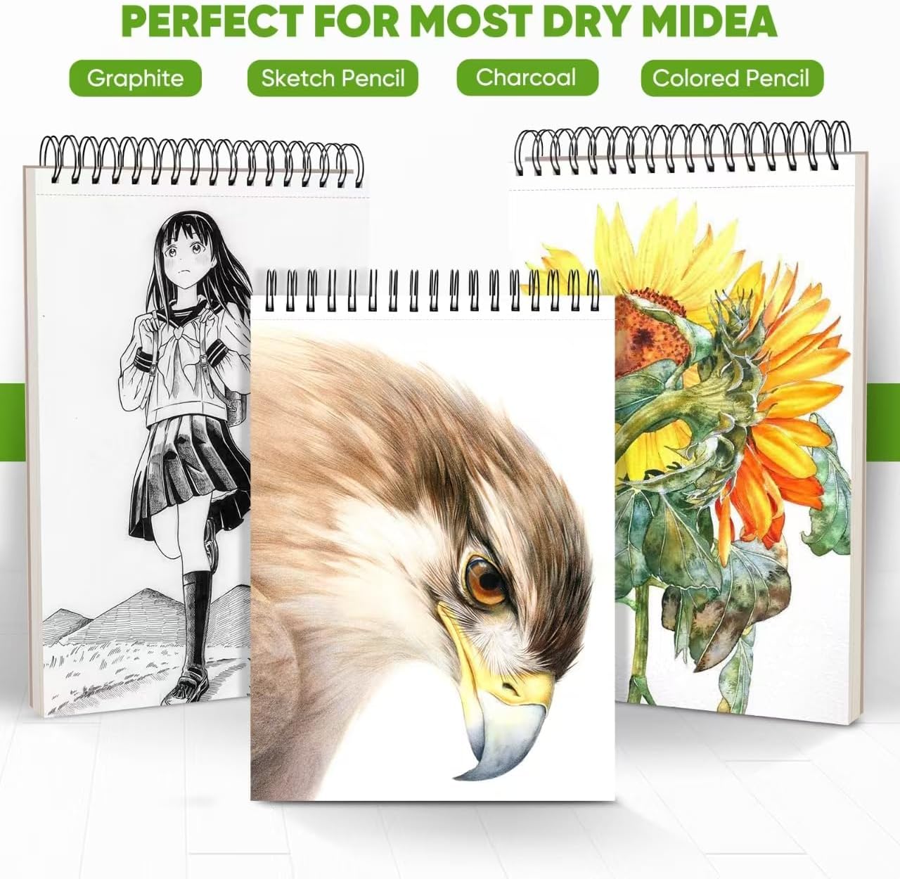 - 【Suitable for all types of dry media】Our these premium, acid-free, natural white drawing sketching paper are suitable for all types of dry media, such as pencils, pens, crayons, charcoal, pastels and sketching sticks. NOT applicable to Alcohol markers and Watercolor pens.