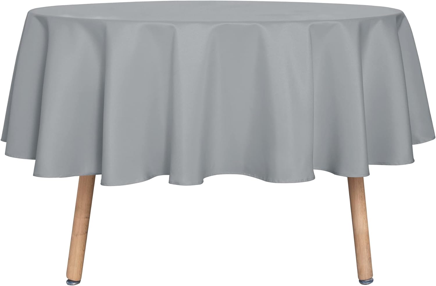 sancua Round Tablecloth - 80 Inch - Water Resistant Spill Proof Washable Polyester Table Cloth Decorative Fabric Table Cover for Dining Tables, Buffet Parties and Camping, Silver Grey