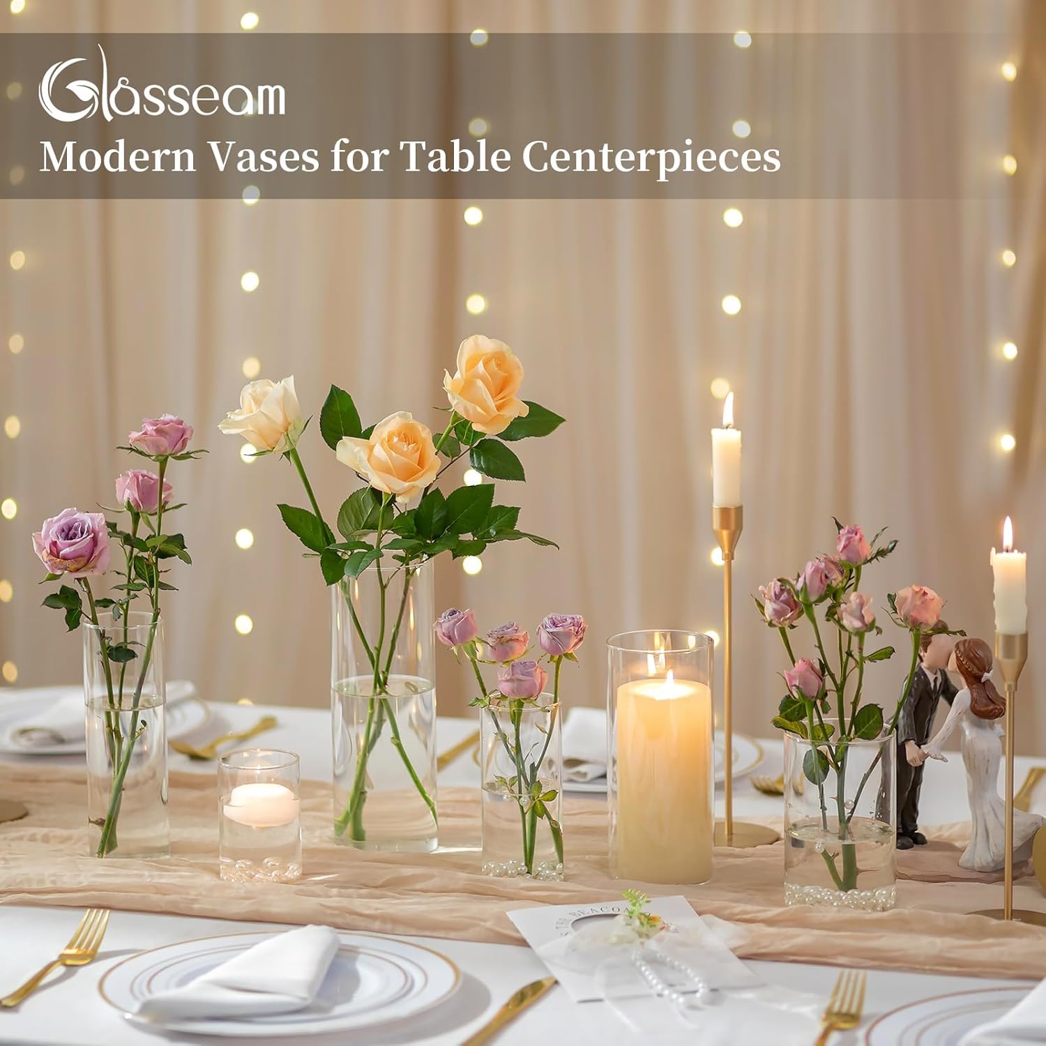 - Touch of Beauty: Made of high quality clear glass, this cylindrical vases for decor works great both as a decorative vase for mantle fireplace or home decor, and as a centerpiece vase for large scale events, birthday party or wedding reception, baby shower, creating a chic and welcoming ambiance.