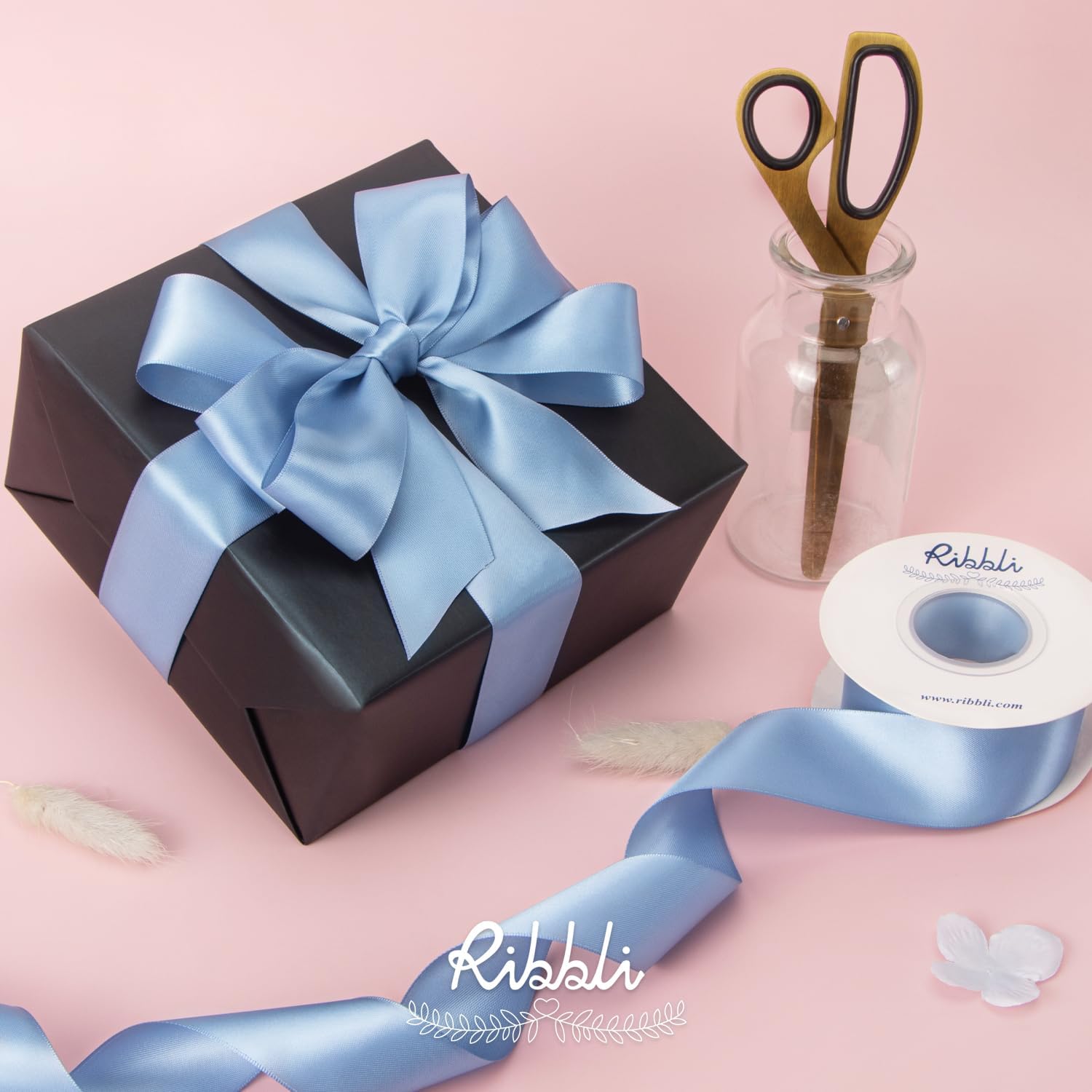 Ribbli Dusty Blue Satin Ribbon,Double Faced Satin 1-1/2 inch x Continuous 25 Yards,Use for Bows Bouquet,Gift Wrapping,Wedding Decoration,Floral Arrangement