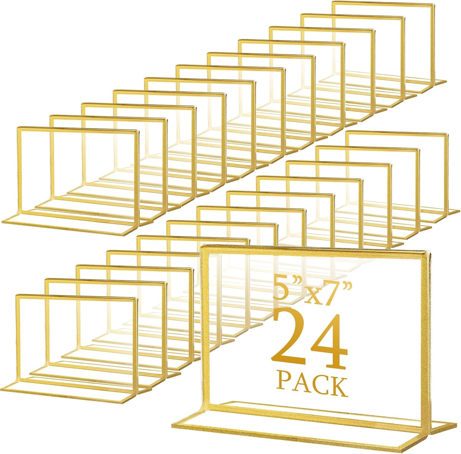 - What You Get: includes 24 6 x 4 inch horizontal gold acrylic sign holders, ideal for weddings, receptions, restaurants, or business events; Perfect for displaying table numbers, place cards, menu cards, photos, or small signs.(Tip: Remove film before use)