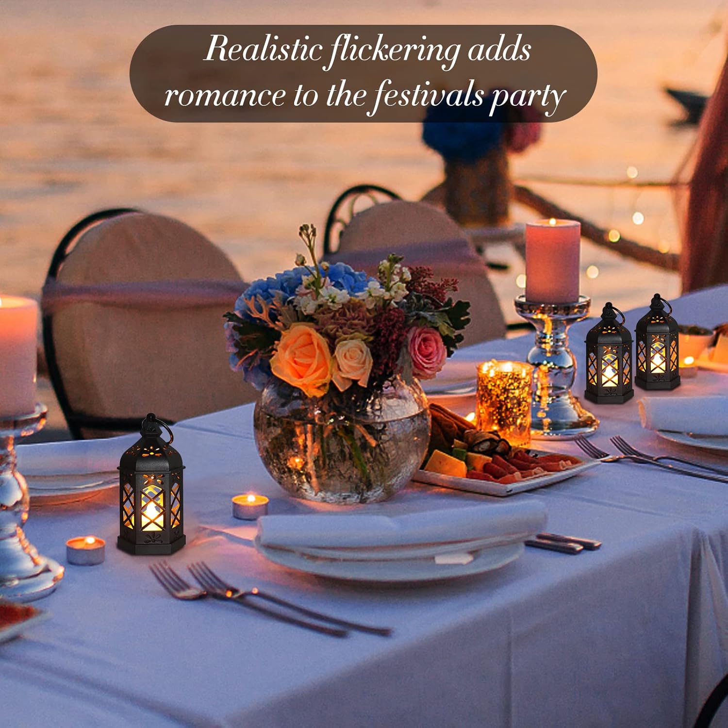 - 【Batteries Included 】For your convenience, each small lantern centerpiece contains 3 batteries(Type:LR44). It works for at least 120 hours and is smokeless and flameless, safer than real candles, very reliable and energy efficient. equipped with switch design at the bottom, you just need to remove the battery protection patch, very easy to use.