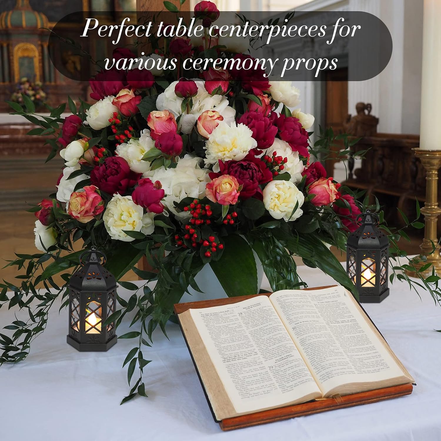 - 【How to Use】The moroccan style battery operated candles lantern centerpieces has a novel appearance, attracting attention. Perfect for Christmas, Halloween, wedding decor, activities party gifts decorations, Ramadan, romantic weddings, religious celebrations, holiday parties, etc. Use as a decorative lantern on a wall,backdrop,front door,aisle,desk, hanging from a tree or rope, in the bedroom bathroom kitchen indoor and outside.