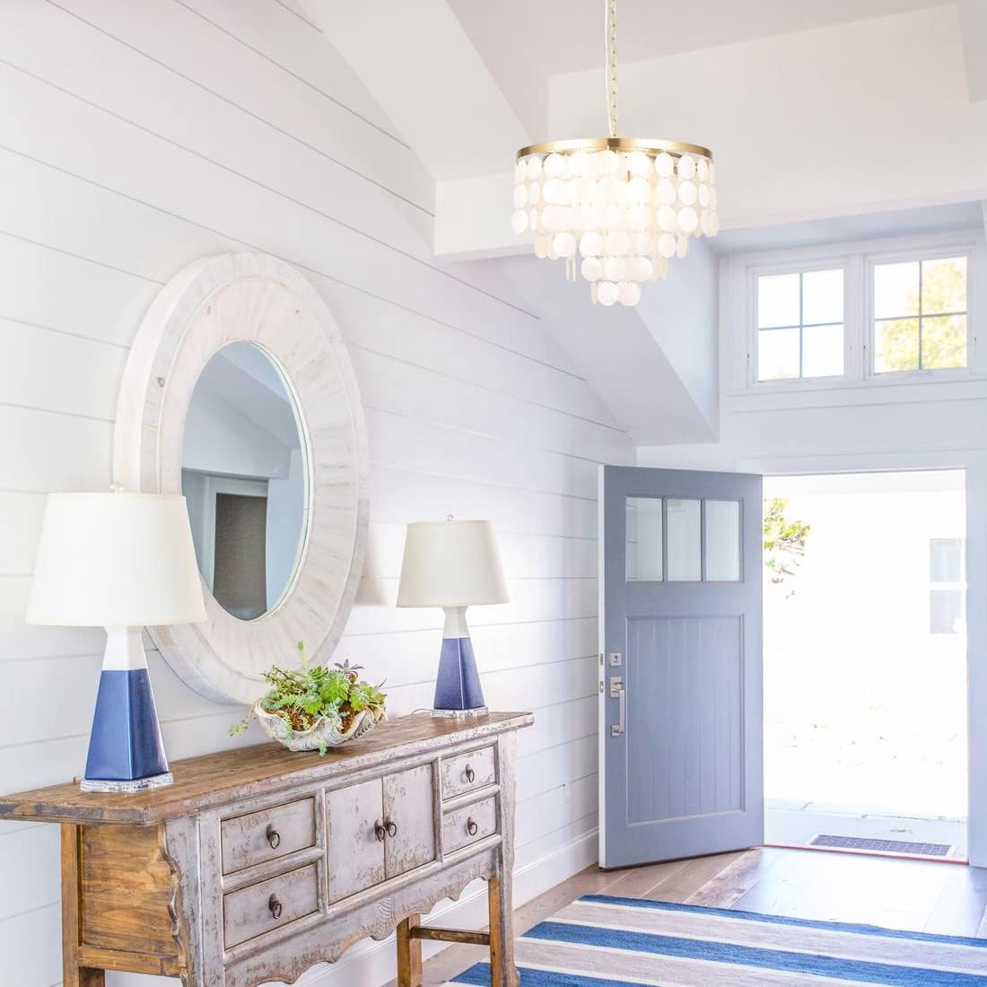ALICE HOUSE 18.2" White Shell Chandeliers, Brushed Brass Finish, Coastal Kitchen Island Light Fixture, 4 Light Modern Pendant Light for Dining Room, Entryway and Bedroom, ETL Listed, AL2608-P4