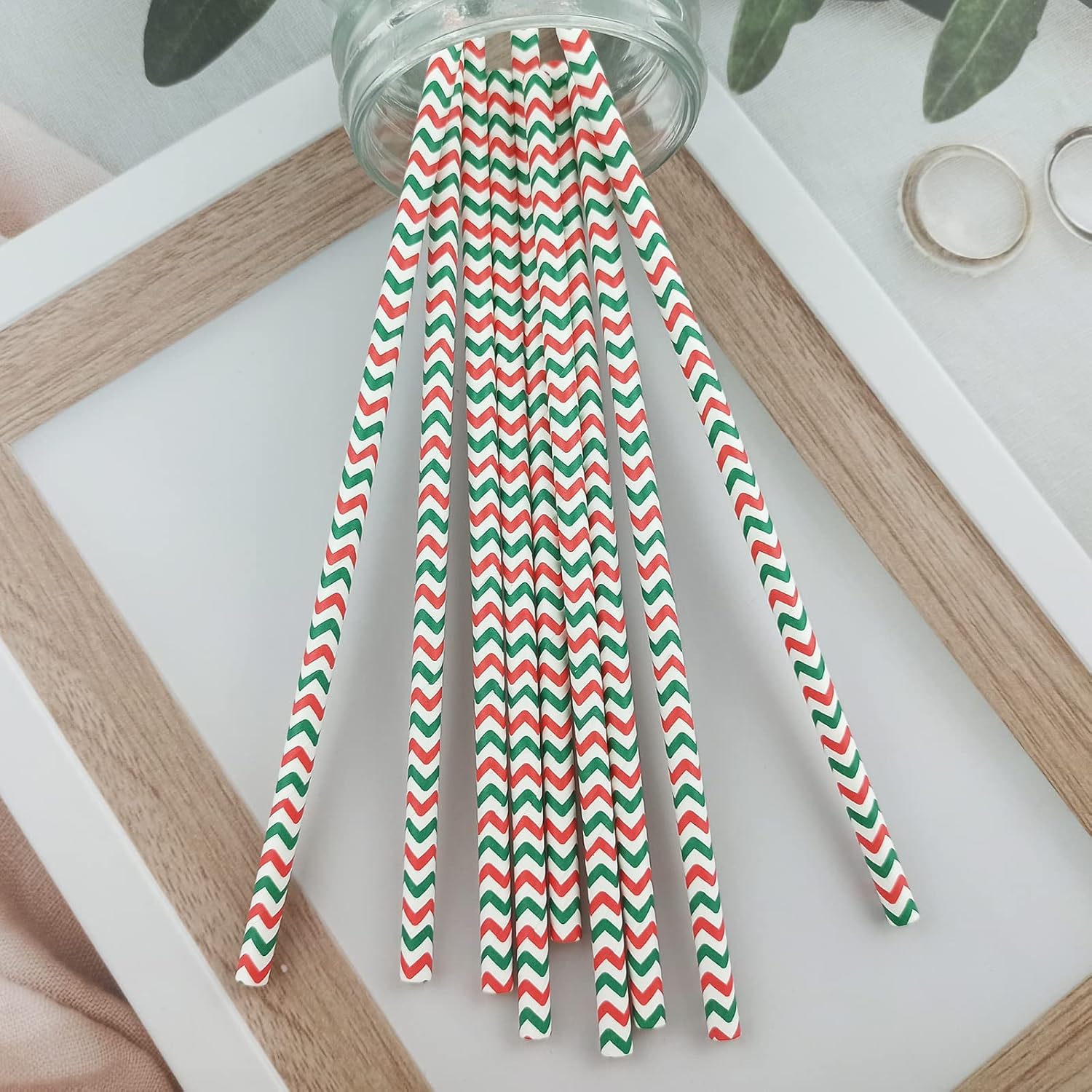 - 🎀Includes 100 pcs Red and Green Waves Striped party Paper Straws.