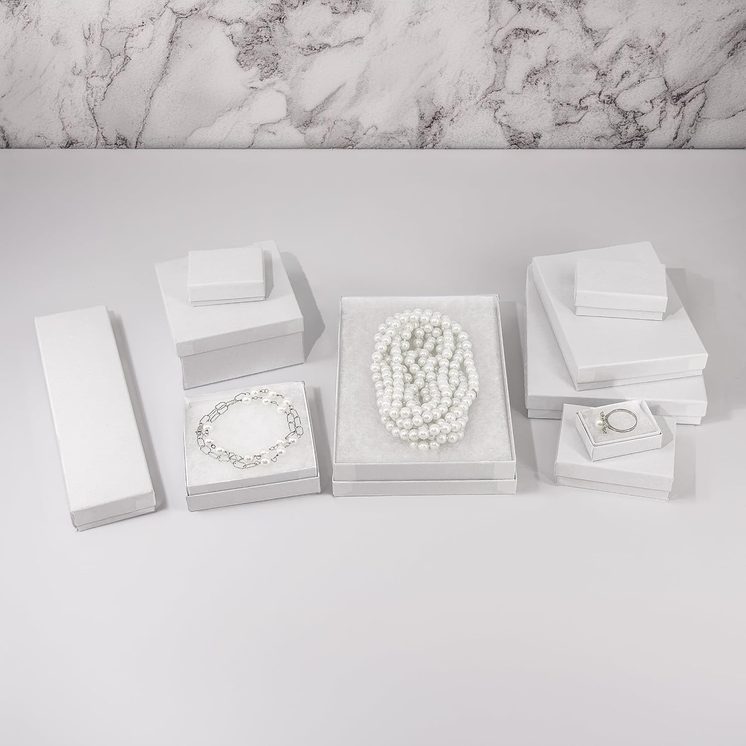 TheDisplayGuys - 25-Pack #53 Kraft Paper Cardboard Gift Boxes/Jewelry Cases w. Cotton Padding & Lid - Matte White - (5.4" x 3.9" x 1.0")
