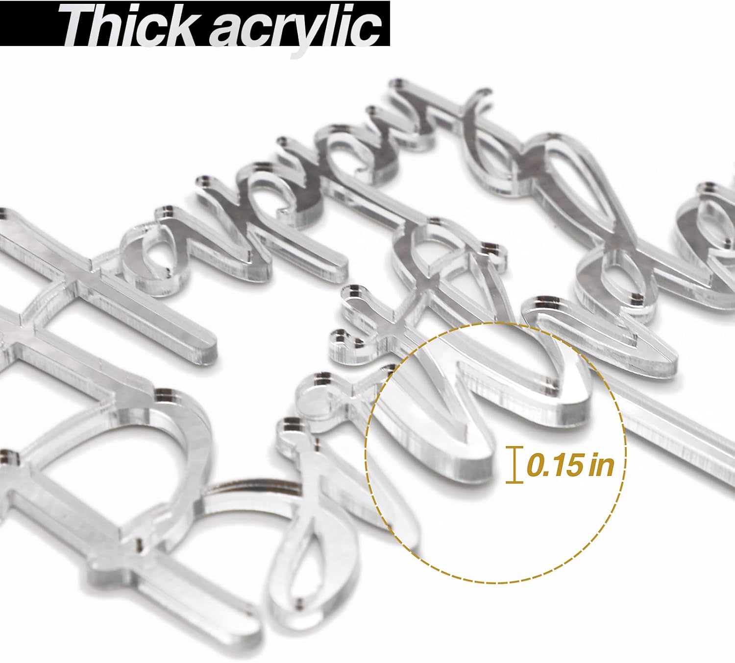 Happy Birthday Cake Topper, Mirrored Silver Acrylic Versatile Cake Topper for Birthday Party Decoration Ideas, Perfect Keepsake for your family and friends