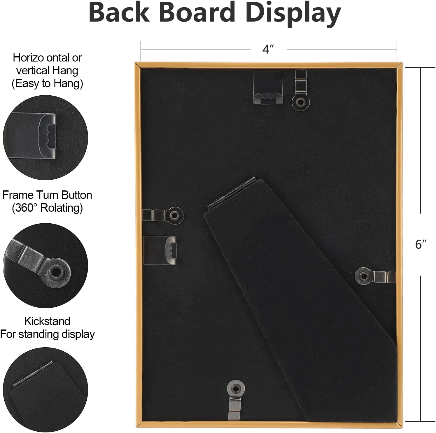 - 【Dimensions and functions】: This picture frame can hold 4x6 inchs photos, Display of Tabletop and Wall Hanging
